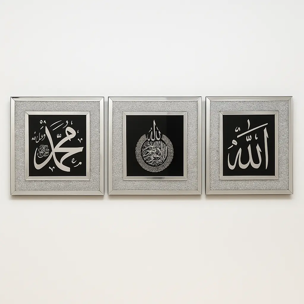 أضف حضورًا روحيًا رائعًا إلى منزلك واحصل على أفضل صفقة لمجموعة الإطارات الجدارية الإسلامية. مصنوعة من زجاج فاخر وإطار من الفولاذ المقاوم للصدأ عالي الجودة، تخلق هذه المجموعة المكونة من ثلاث قطع عرضًا مذهلًا بعرض 180 سم.
