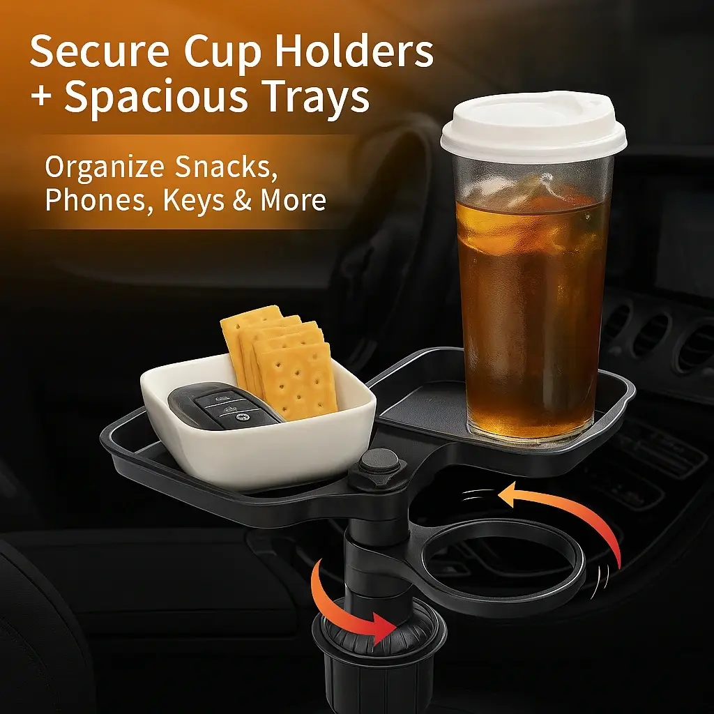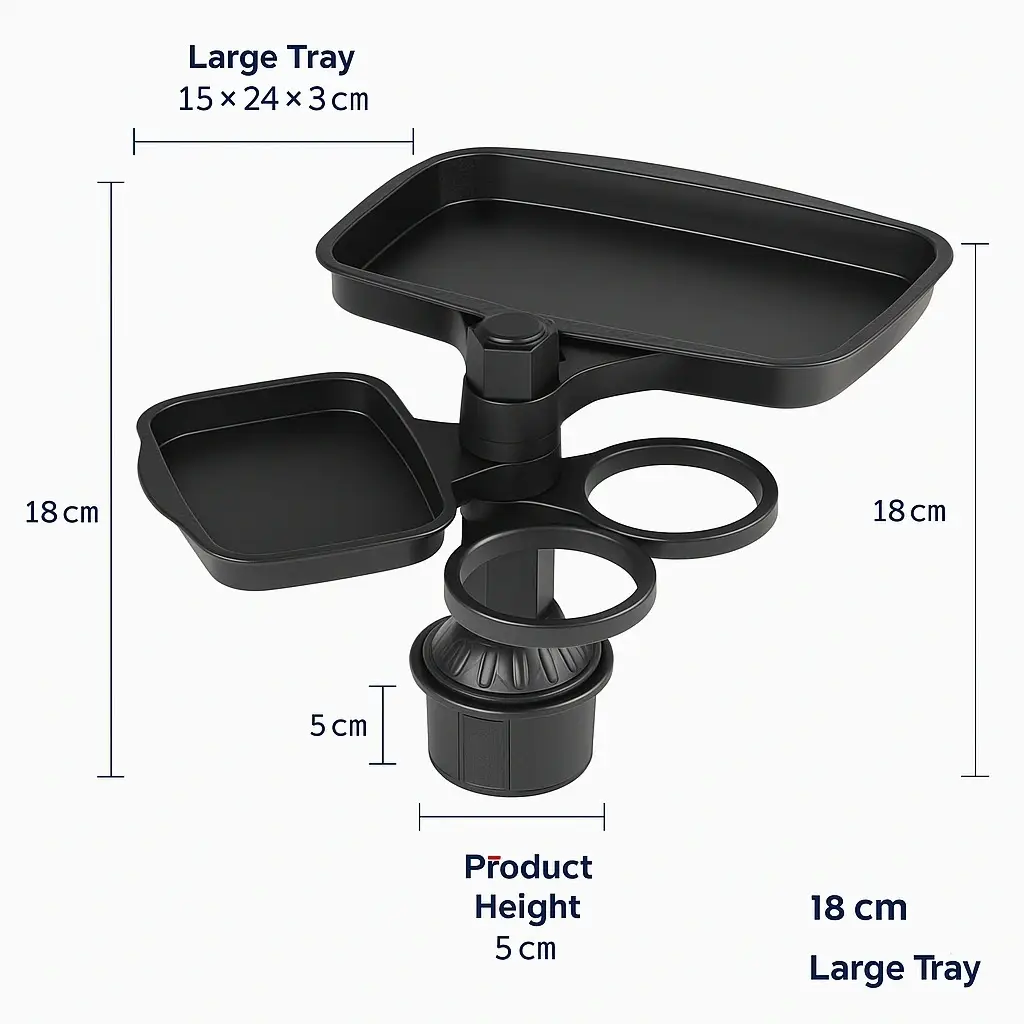 استفد إلى أقصى حد من كفاءة مساحة سيارتك الداخلية مع حامل الأكواب وصينية الطعام متعددة الوظائف – باللون الأسود، وهو منظم سيارات مميز بتصميم 3 في 1 ومناسب للسائق العصري. يتميز هذا الإكسسوار المبتكر بنظام حامل أكواب مزدوج مدمج يضاعف مساحة حفظ المشروبات فورًا، كما يوفر صينية طعام ثابتة ومتكاملة لتناول الوجبات الخفيفة أثناء التنقل. تم تصميمه لضمان الثبات؛ حيث تتمدد قاعدة التثبيت القابلة للتعديل لتُحكم الإغلاق داخل معظم حوامل الأكواب القياسية في السيارات، مما يساعد على بقاء الأغراض مستقرة وعمودية حتى أثناء المنعطفات الحادة أو التوقف المفاجئ. سواء كنت تستخدم سيارتك يوميًا للتنقل أو تخطط لرحلة طويلة، فإن هذا المنتج الأساسي للرحلات يحافظ على المقصورة مرتبة وخالية من الفوضى، ويجعل احتياجاتك في متناول اليد بسهولة.