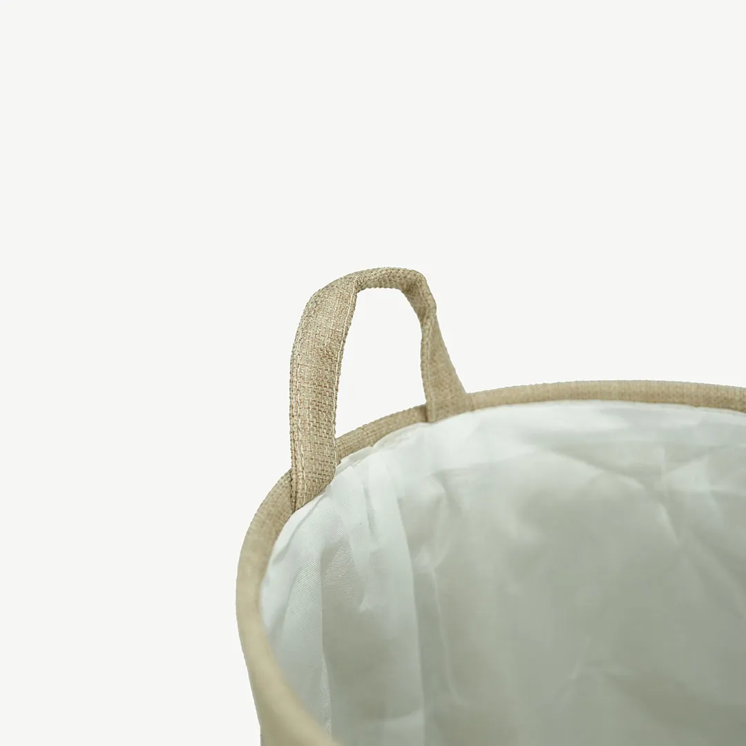 • كتان طبيعي فاخر: خامة مستدامة وصديقة للبيئة تمنح السلة متانة وشكلاً جمالياً دافئاً.