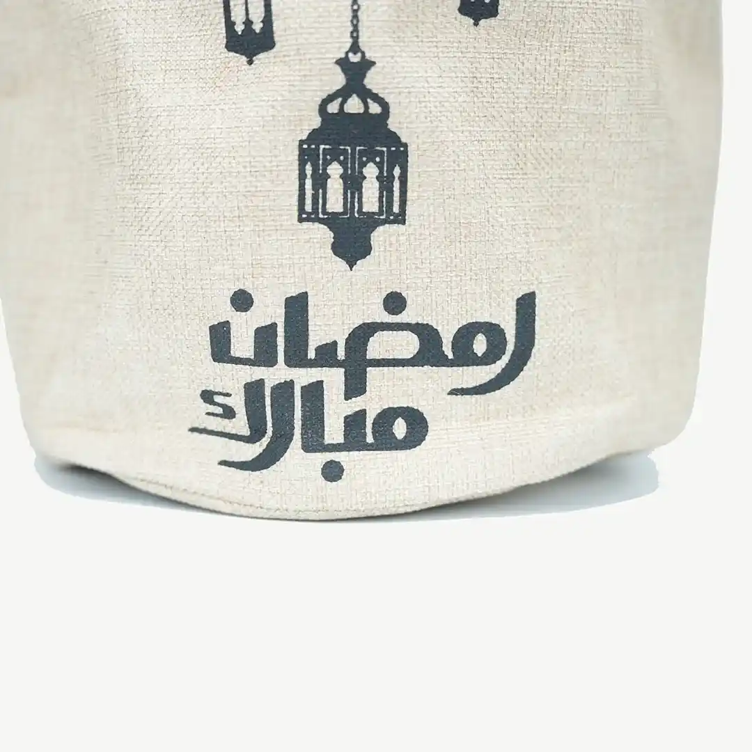 مميزات سلة هدايا كتان مزخرفة بعبارة "رمضان مبارك"