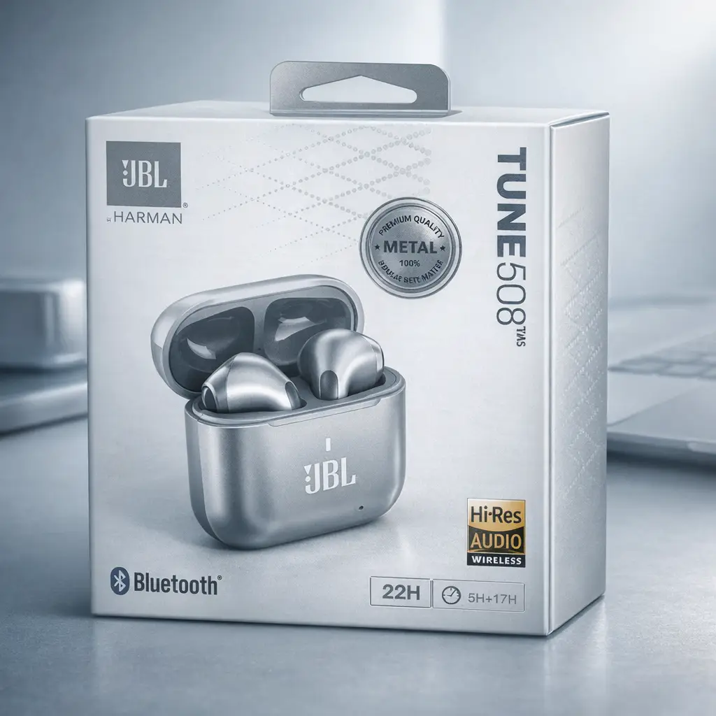 صوت قوي وراحة طوال اليوم مع سماعات الأذن اللاسلكية الأصلية JBL TUNE 508 TWS مع علبة شحن، متوفرة في متجر لازود الإلكتروني. استمتع بالاقتران السلس عبر البلوتوث وعمر تشغيل يصل إلى 22 ساعة—مثالية للشراء للعمل أو السفر أو الاستخدام اليومي.