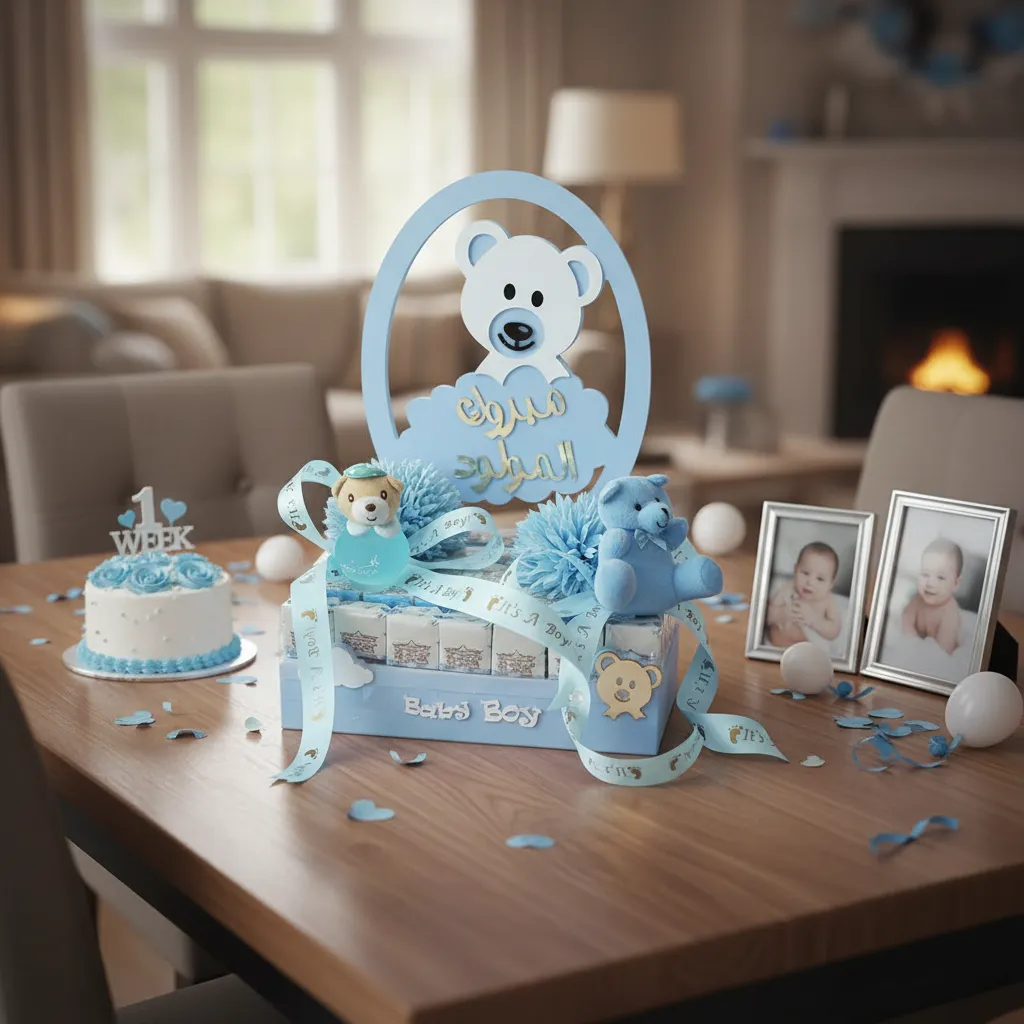 ديكور مميز: يتضمن شخصيات دببة ثلاثية الأبعاد وبركات عربية ذهبية.