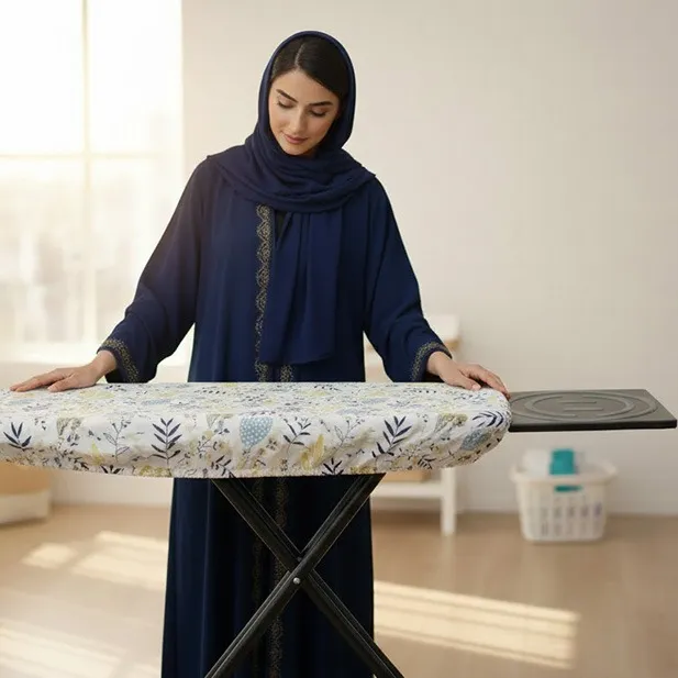مقاس مثالي: حواف مطاطية شديدة التحمل تضمن ثبات الغطاء على مختلف أحجام طاولات الكي.