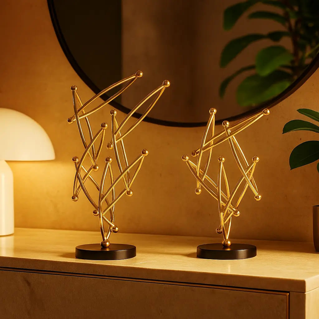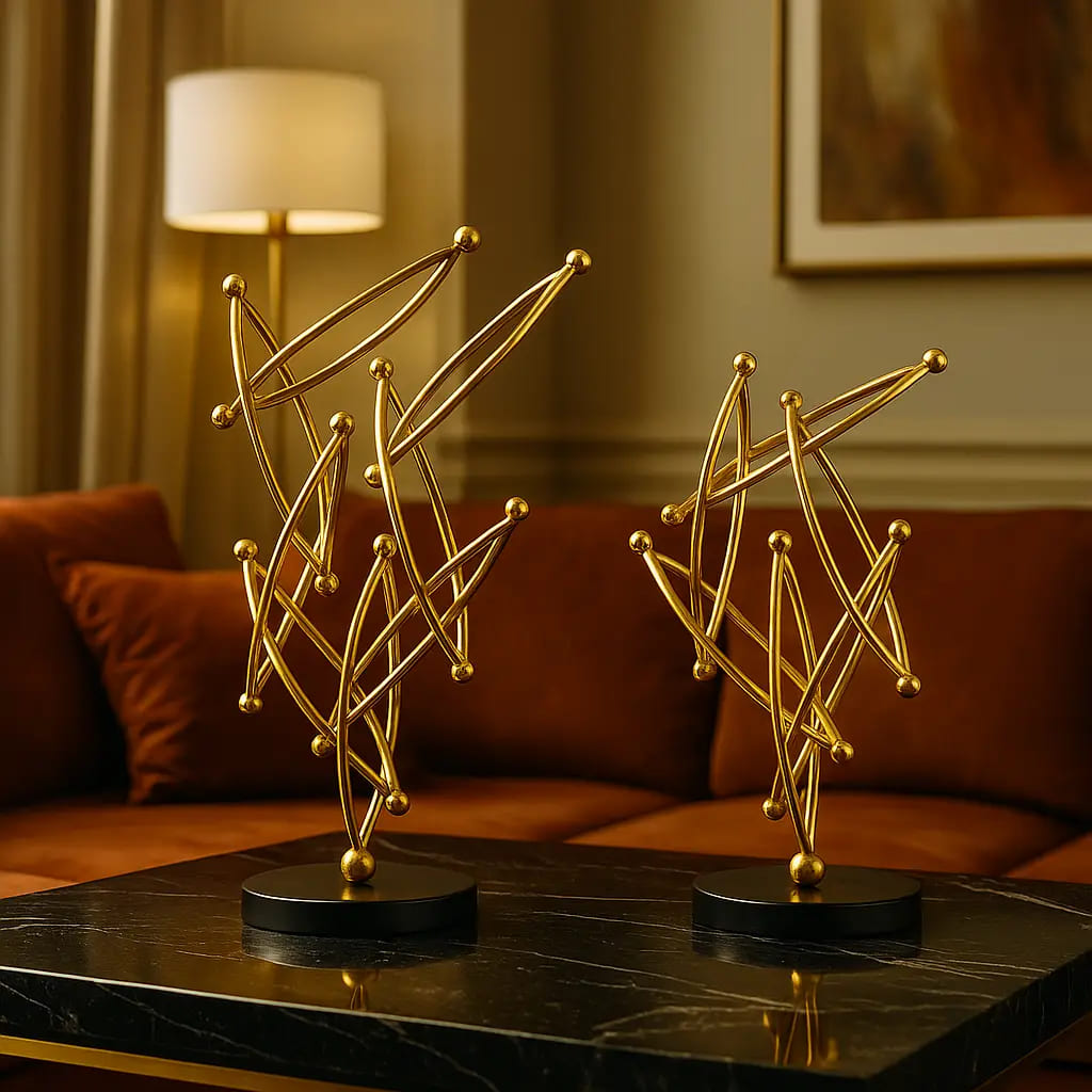 زَيّن ديكور منزلك بطقم الديكور المعدني التجريدي بقاعدة من الرخام