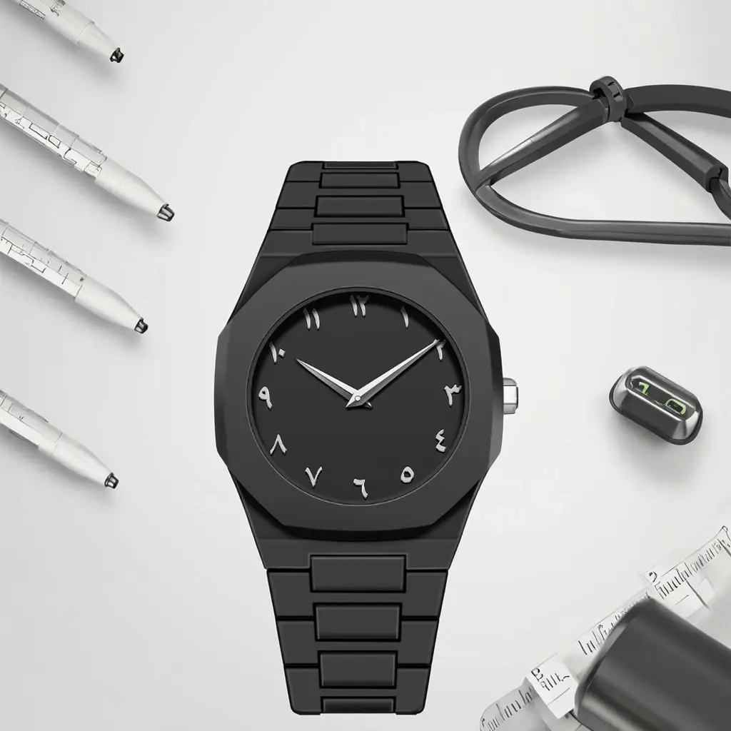The Arabic Aura Minimalist Watch – All Black Edition from Lazood is not just a watch; it’s a refined statement of cultural pride, identity, and modern sophistication. Designed in a sleek matte black finish, this timepiece combines minimalist elegance with the unique charm of Arabic numerals in the signature Arabic Aura font.