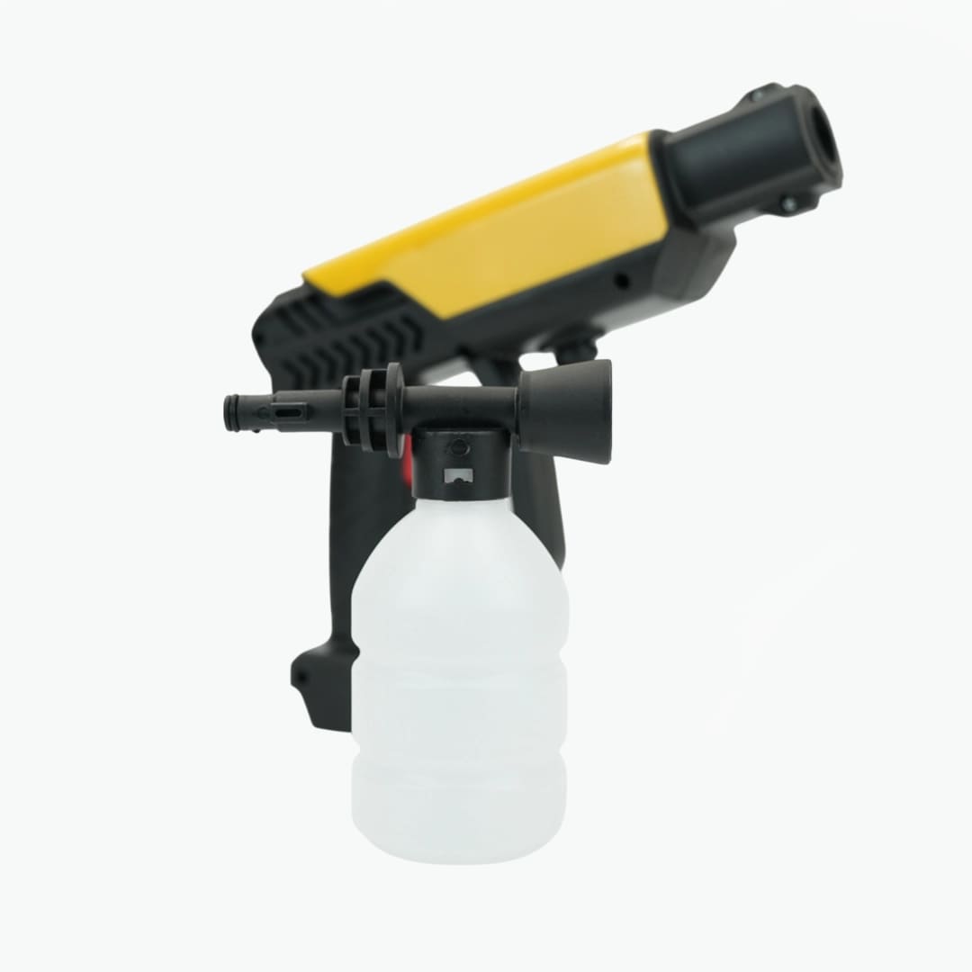 - مجموعة ملحقات كاملة: تتضمن المجموعة الملحقات الأساسية مثل زجاجة للصابون/الرغوة لتطبيق المنظف، وخرطوم طويل لسحب المياه من أي مصدر خارجي (مثل دلو أو حوض سباحة)، وفوهة قابلة للتعديل للتحكم في الرش.