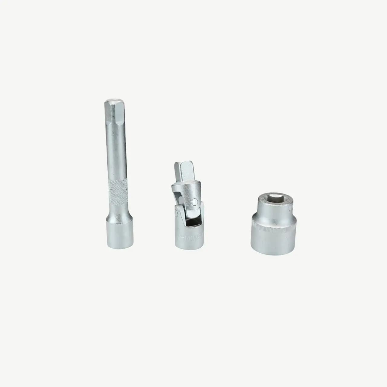 • طقم لقم كامل: يتضمن مجموعة واسعة من أحجام اللقم وملحقات التشغيل (مثل السقاطات ووصلات التمديد)، وهو مثالي للأعمال الميكانيكية وصيانة السيارات.