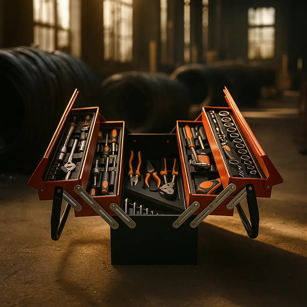 كفاءة وتنظيم لكل مشروع يُعد طقم الأدوات الاحترافي الشامل القابل للتوسيع هو المجموعة الأساسية لكل من يقدّر الجودة، والتنوع، والتنظيم الفائق. يتميز هذا الطقم بصندوق أدوات معدني قوي بـآلية الفتح المتدرج (عادةً باللونين الأحمر والأسود)، ويوفر وصولاً فورياً لجميع الأدوات الضرورية. وهو متوفر الآن للتسوق المريح عبر الإنترنت في لازود.