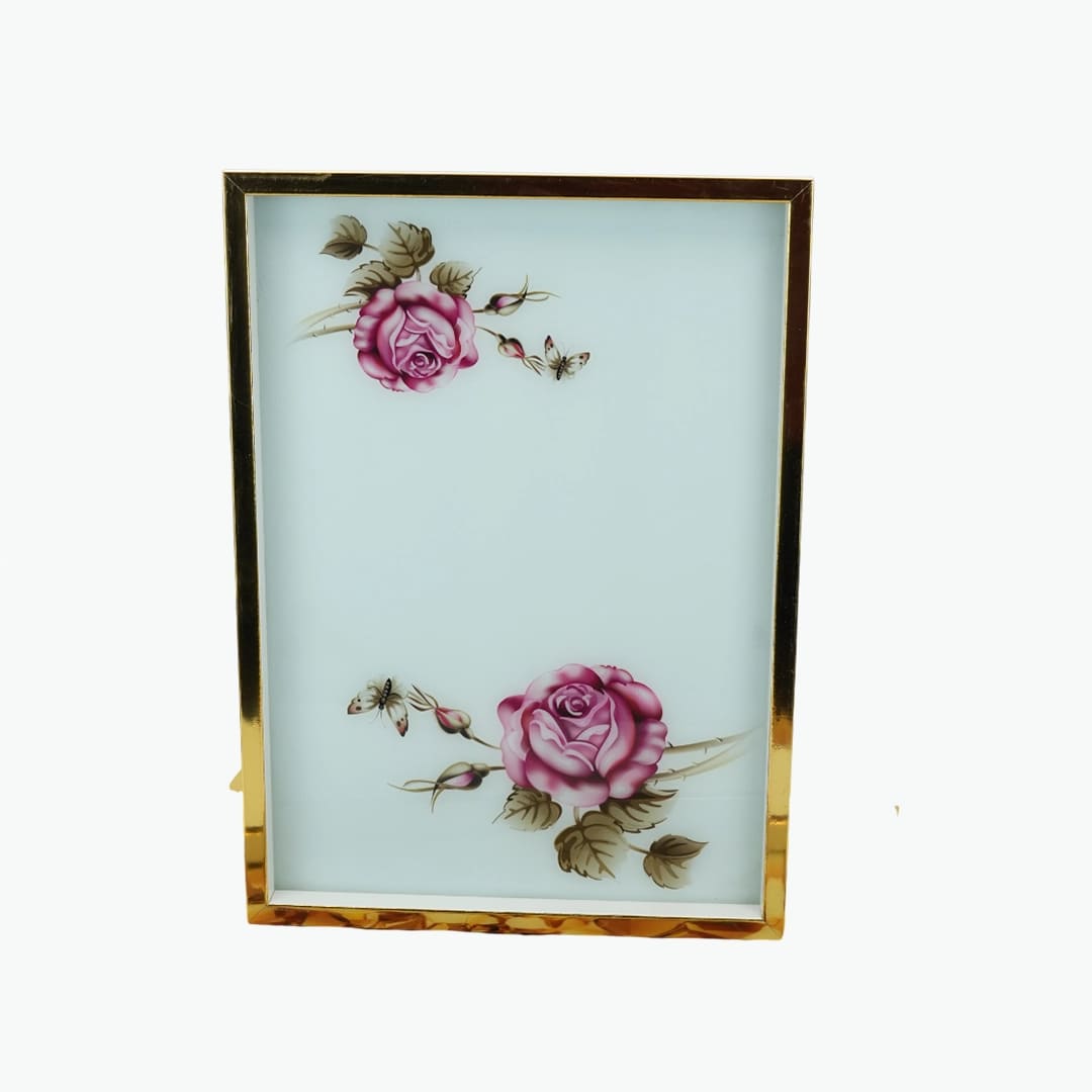 • المادة: زجاج متين مع إطار مزخرف باللون الذهبي