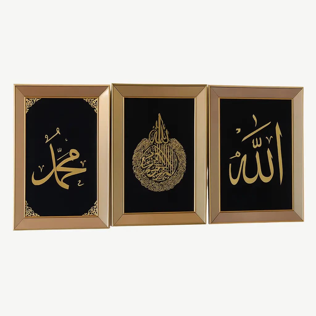 طقم لوحات إسلامية فاخرة مؤطرة بالذهبي (3 قطع)