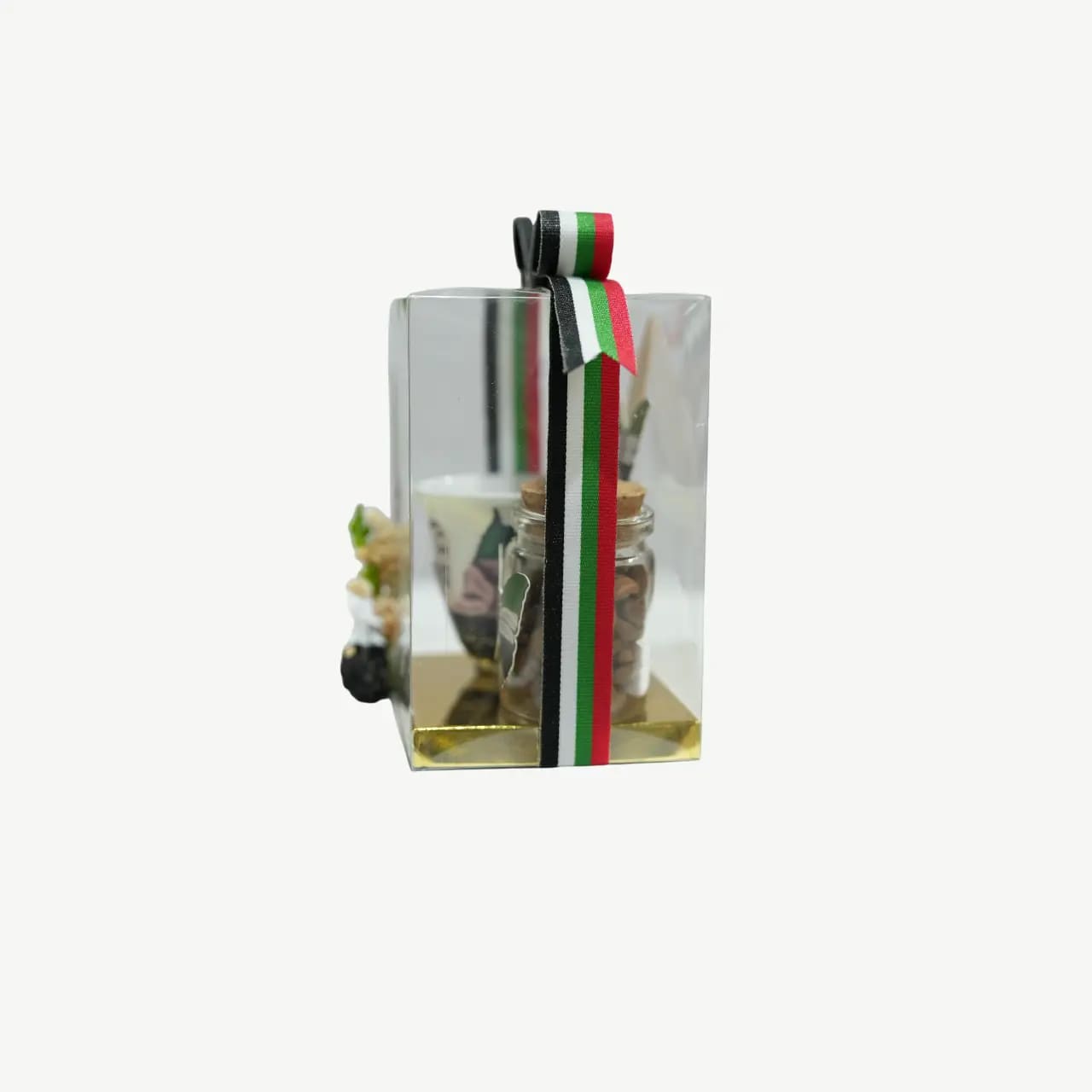 Patriotic Details: Includes butterfly cutouts decorated with the UAE flag colors on the stirrer and jar.