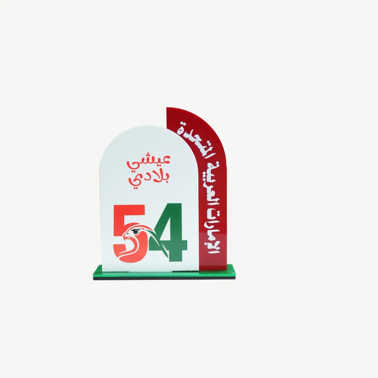 Commemorate the 54th Anniversary of the UAE with the exclusive UAE 54th Union Day Desk Plaque from Lazood. A vibrant, modern souvenir for your office or home, capturing the patriotic spirit.