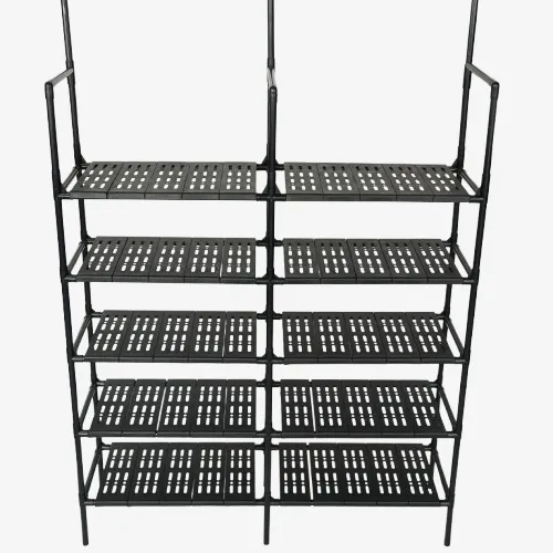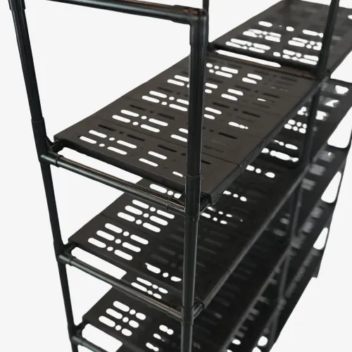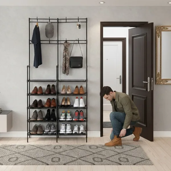 Versatile Hybrid Design: Features 5 wide tiers for footwear plus integrated top hooks for coats, hats, and light accessories.
