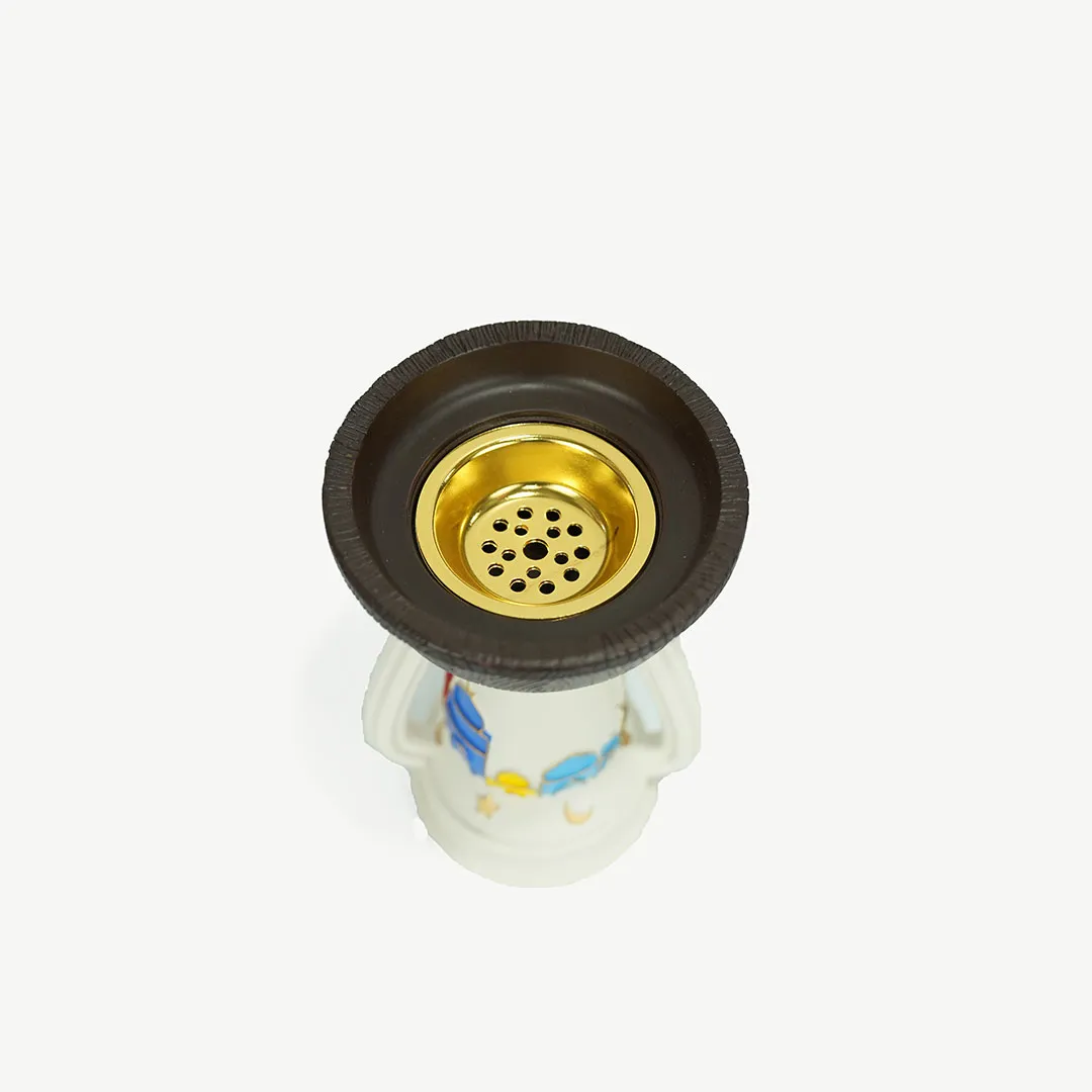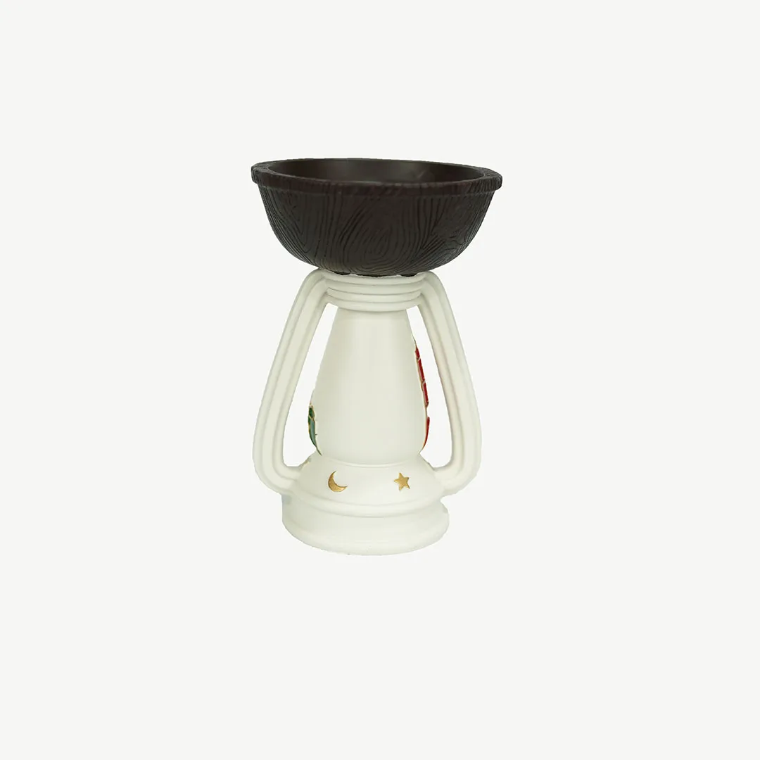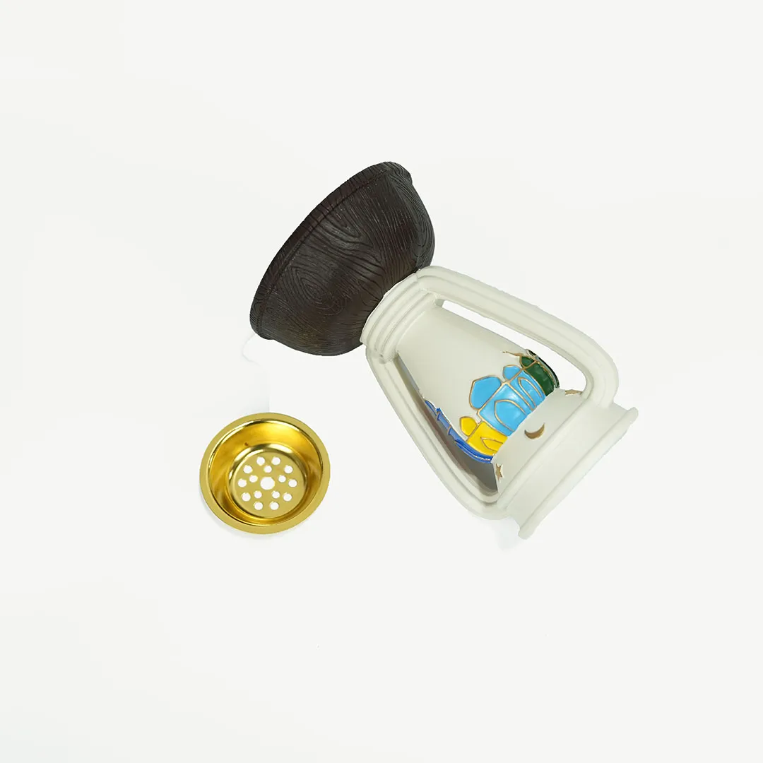 The base is made of durable, high-quality plastic featuring colorful mosque illustrations that reflect the spiritual essence of the region, while the top houses a sturdy metal bowl designed to hold charcoal and incense securely. Its lightweight yet stable construction allows you to move it easily between rooms, ensuring that the peaceful fragrance of Bukhoor reaches every corner of your living space. This burner is more than just a functional tool; it is a decorative statement that honors the long-standing heritage of hospitality.