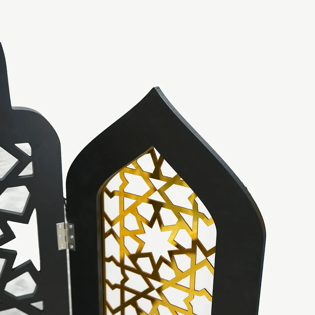 Foldable 3-Panel Room Divider and Prayer Mihrab Wooden Set of 2