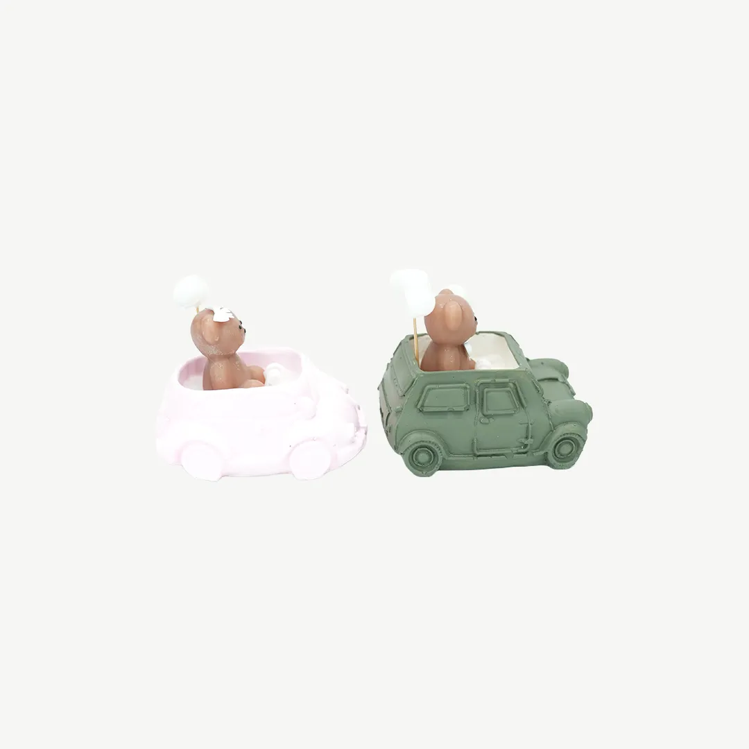 Mini Car with Teddy Bear Concrete Candle Baby Favor (8x10cm)