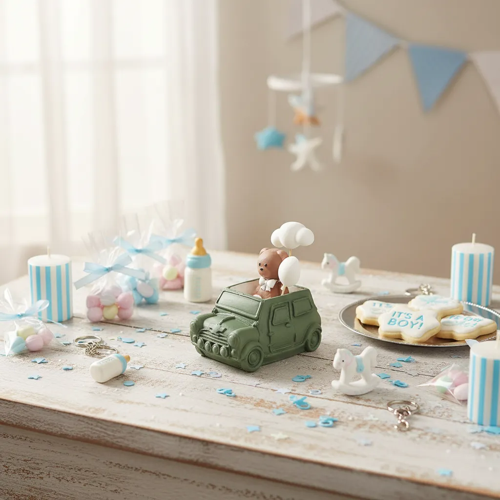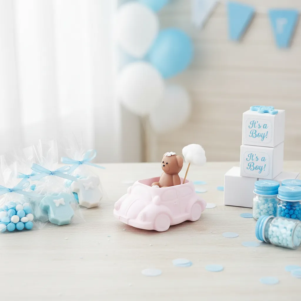 Celebrate your special moments with the Mini Car with Teddy Bear Concrete Candle Baby Favor (8x10cm), a masterpiece of craftsmanship and modern design. This unique distribution piece is perfect for those who appreciate a blend of industrial aesthetics and charming details. Each Mini Car with Teddy Bear Concrete Candle Baby Favor (8x10cm) features a meticulously molded concrete car base, carrying a delightful wax teddy bear that adds a touch of warmth and innocence to your celebration. As the Best online Store Lazood, we are dedicated to providing exclusive gifts that stand out, ensuring your guests receive a high-quality memento they will cherish. The compact 8x10cm size makes it an ideal choice for table settings and personal gifting. This favor is not just a decorative item; it is a symbol of joy and a new beginning, crafted with premium wax and reinforced concrete for a lasting impression. Our collection is curated for customers who demand excellence and artistic flair in every detail of their festive events.