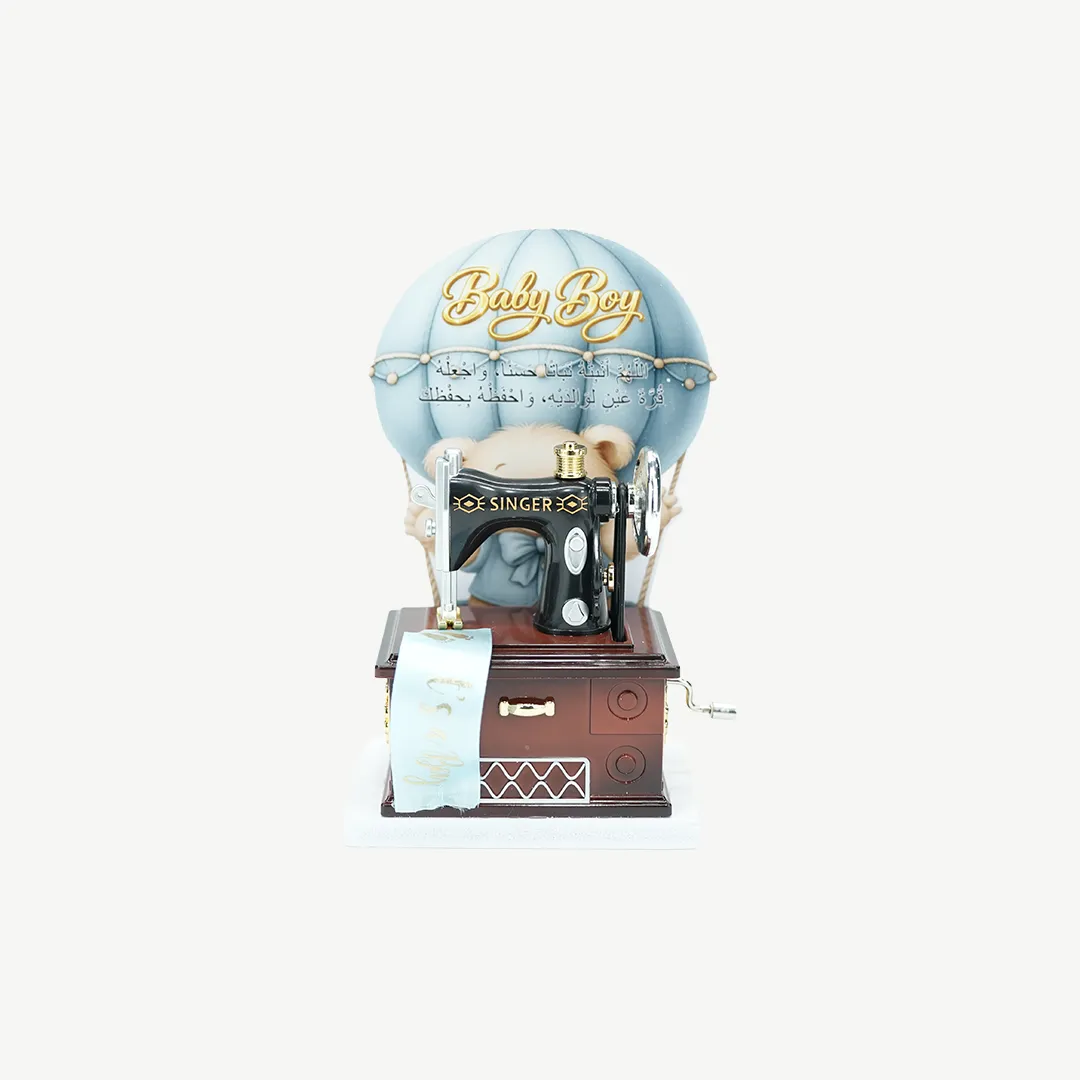 Wooden music box sewing machine decorated with a hot air balloon Baby Boy