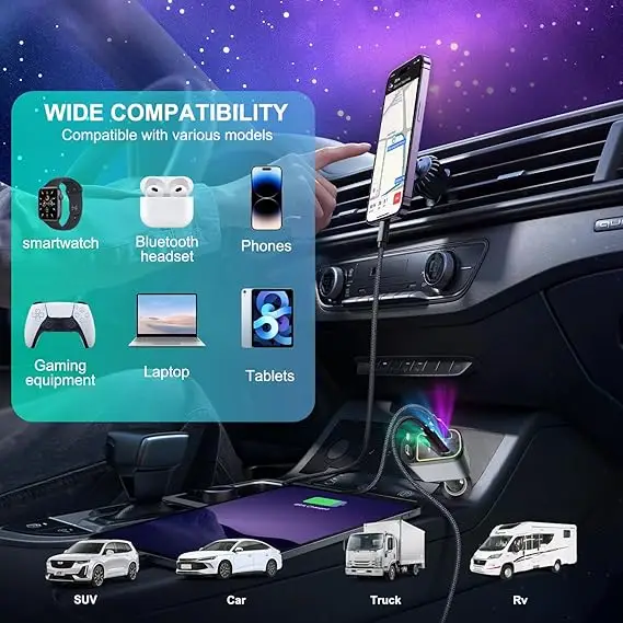 Its compact design includes a convenient LED lamp, durable ABS + metal materials, and compatibility with 12V–24V vehicle inputs. Whether for travel, daily commutes, or emergencies, this car charger is your all-in-one solution.