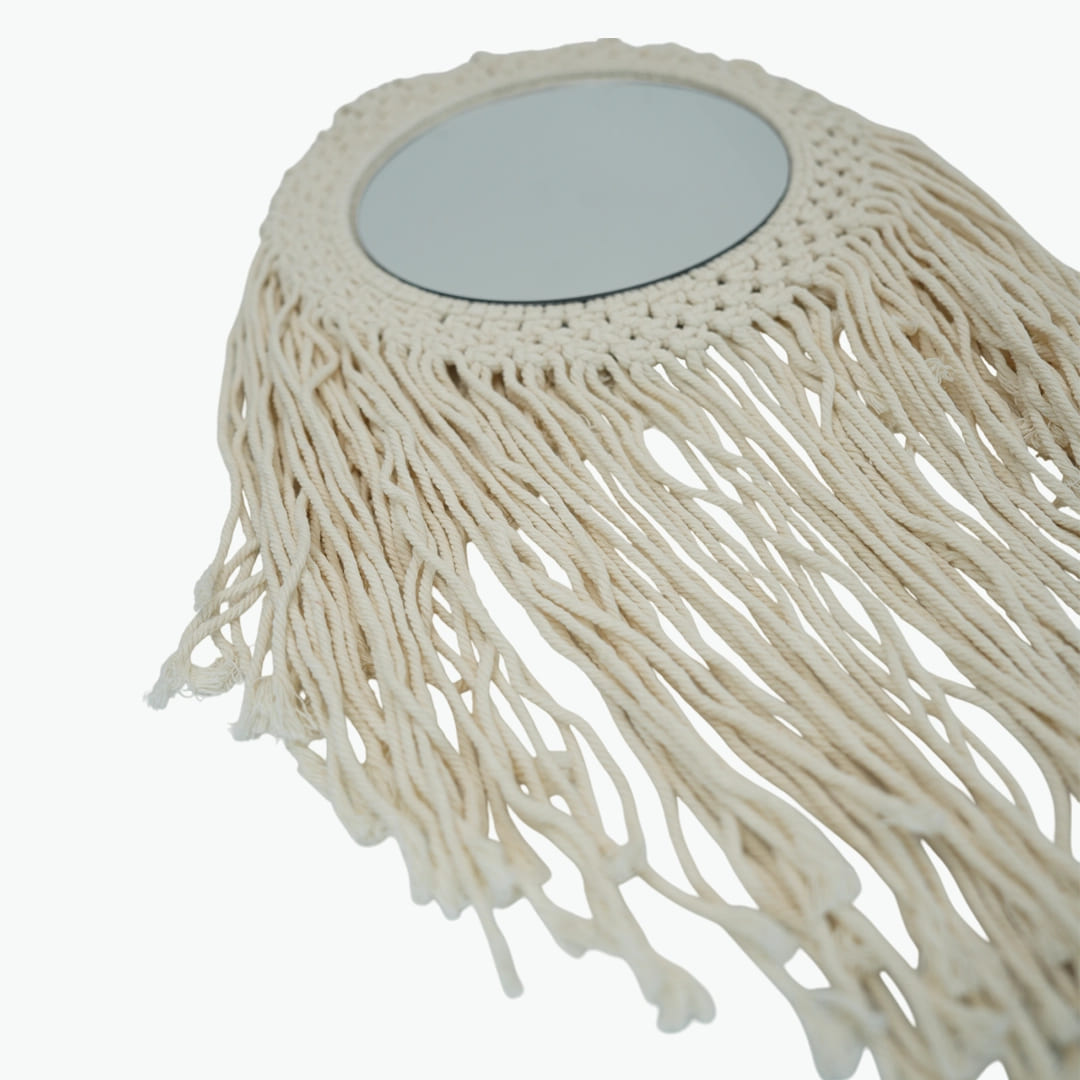 Add a bohemian touch to your space with the Acrylic Decorative Mirror with Macrame Frame—a stylish blend of modern design and handcrafted charm