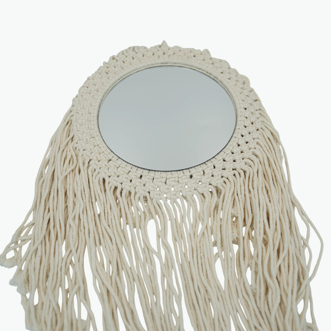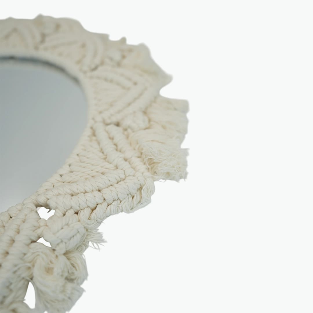 The woven macrame border adds depth and a natural, cozy feel to any wall, making it an ideal accent for bedrooms, living rooms, entryways, or dressing areas. Lightweight yet durable, the high-quality acrylic mirror offers a clear reflection while being safe and easy to hang.
