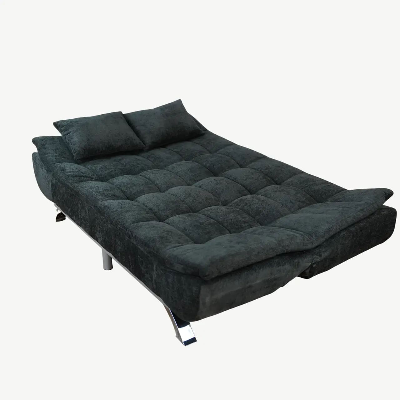 Maximize your space with the versatile Amelia Sofa Bed. Featuring a modern tufted design, comfortable fabric upholstery, and a robust metal base, it effortlessly converts from a chic sofa to a practical guest bed.