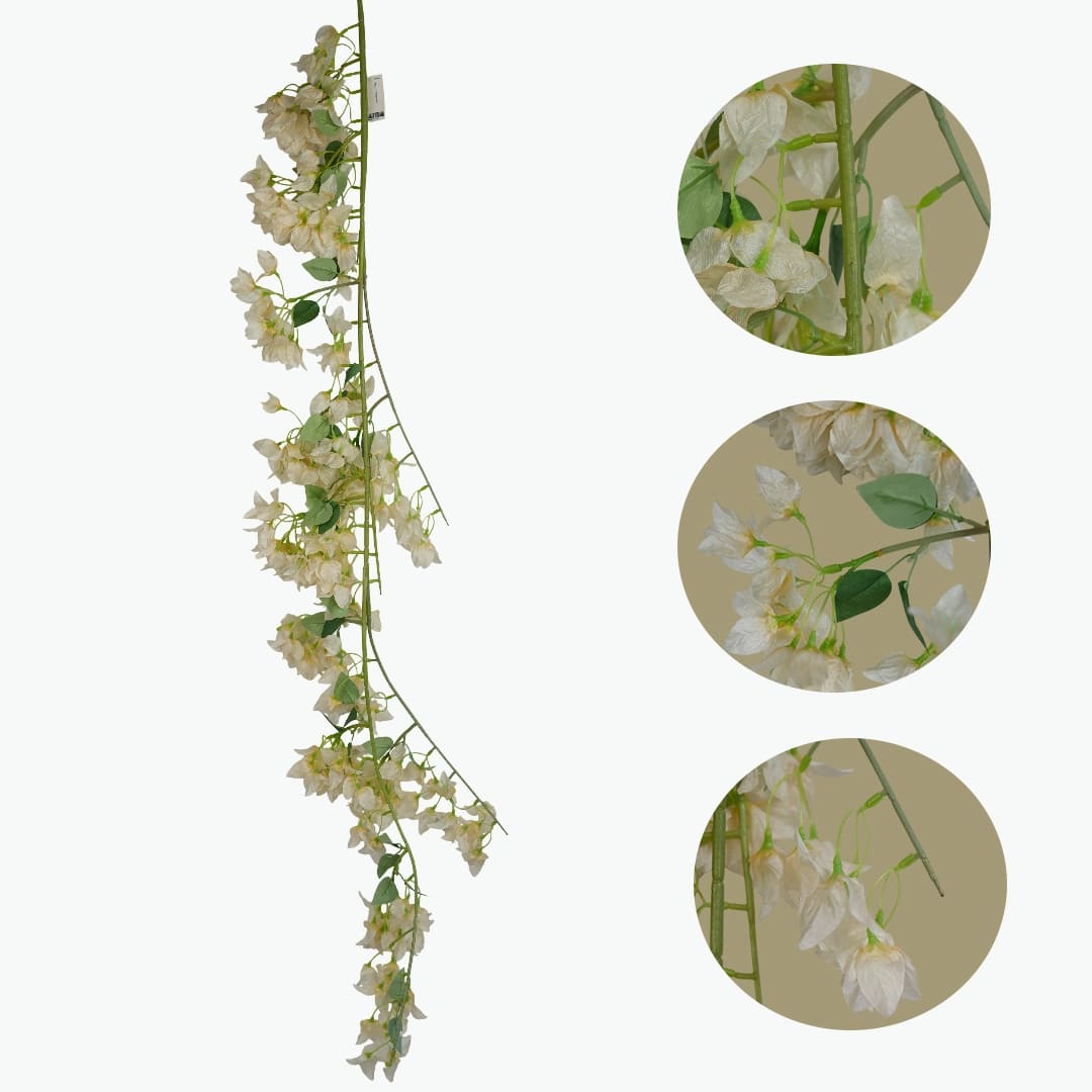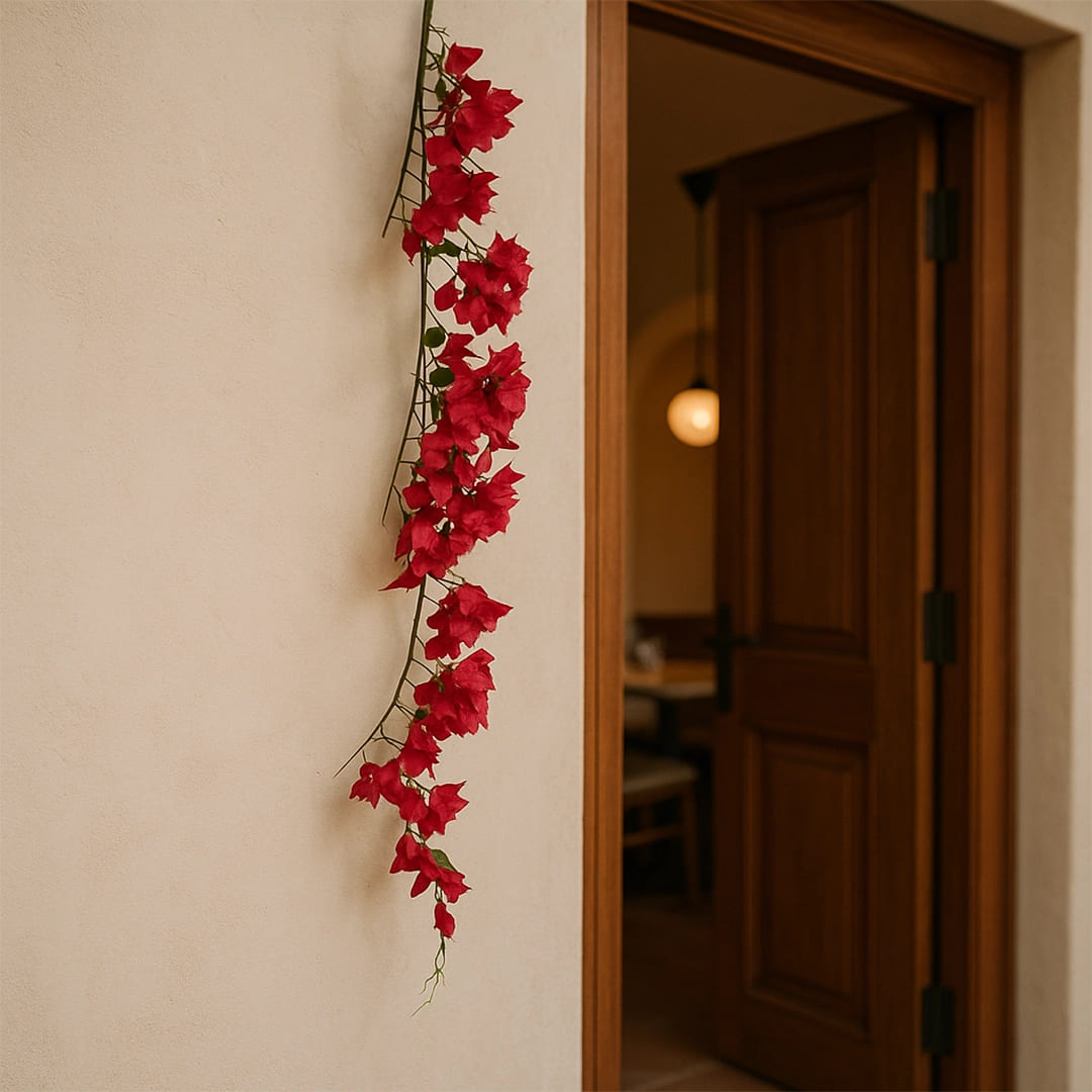 Designed to mimic the beauty of real bougainvillea, these faux flower vines come in a selection of stunning colors — white, red, and purple — complemented by lush green leaves for a realistic finish. They’re ideal for enhancing indoor wall decorations, creating floral arrangements, or adding a touch of nature to your home, café, or event space.