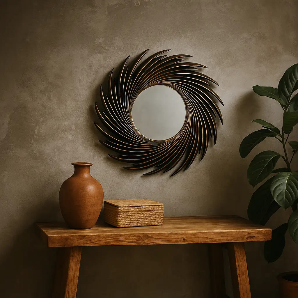 Textural Drama and Bohemian Glamour. The Artistic Swirl Wall Mirror is a unique decorative piece that uses dynamic form to create a profound visual impact. Its frame consists of multiple layered segments spiraling outward from the central mirror, giving it an appearance of motion and raw, handcrafted texture. Now available for seamless online shopping at Lazood, this mirror is the perfect accent for adding character to rustic, bohemian, or eclectic interior designs.