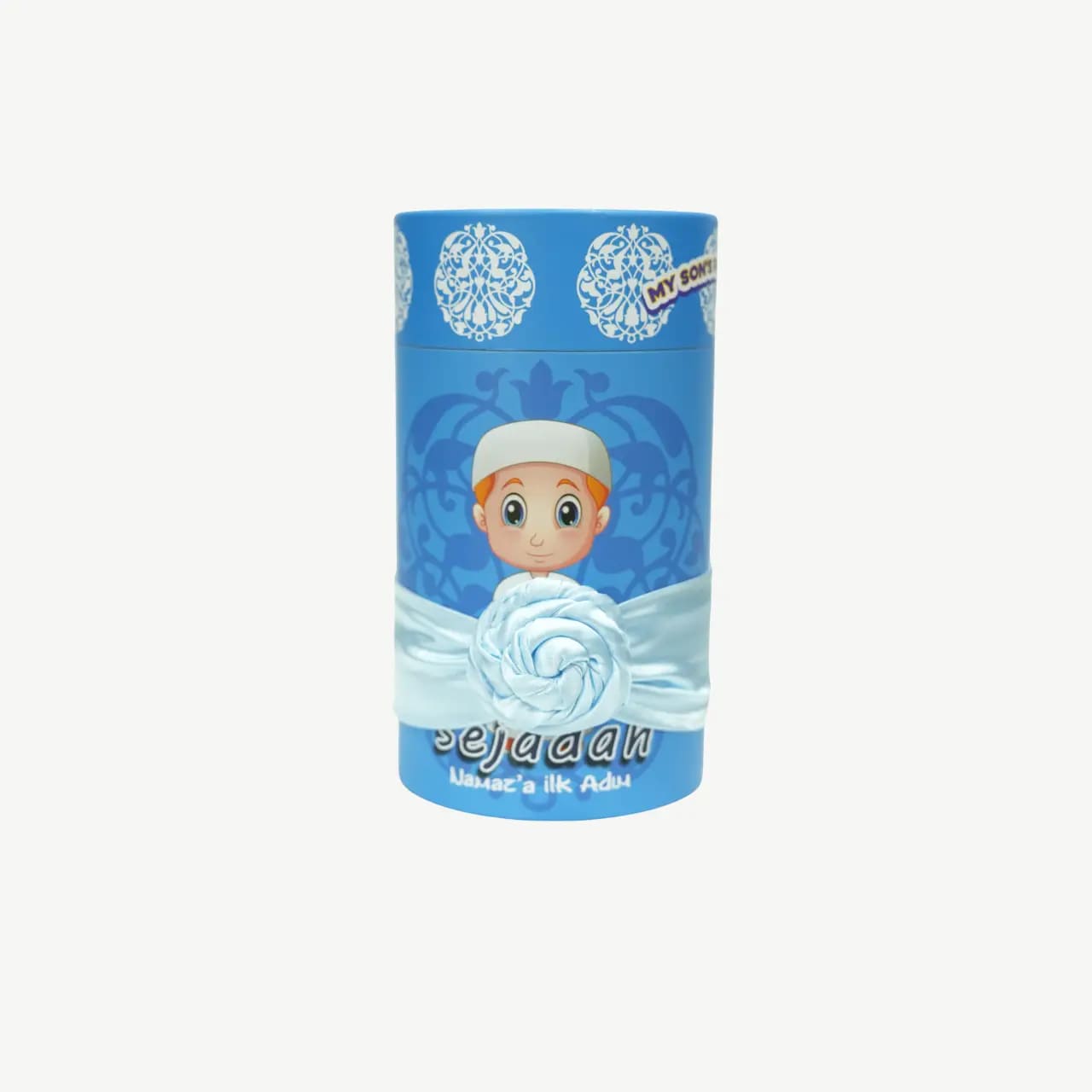 The Blue Boys’ Keepsake Piggy Bank is an excellent gift for a newborn boy, perfect for instilling the value of saving from an early age. Available exclusively through the Lazood online store, this cylindrical piggy bank is designed specifically for boys. The structure features a bright blue color with Arabic-style motifs and a cartoon character of a boy wearing a white cap.