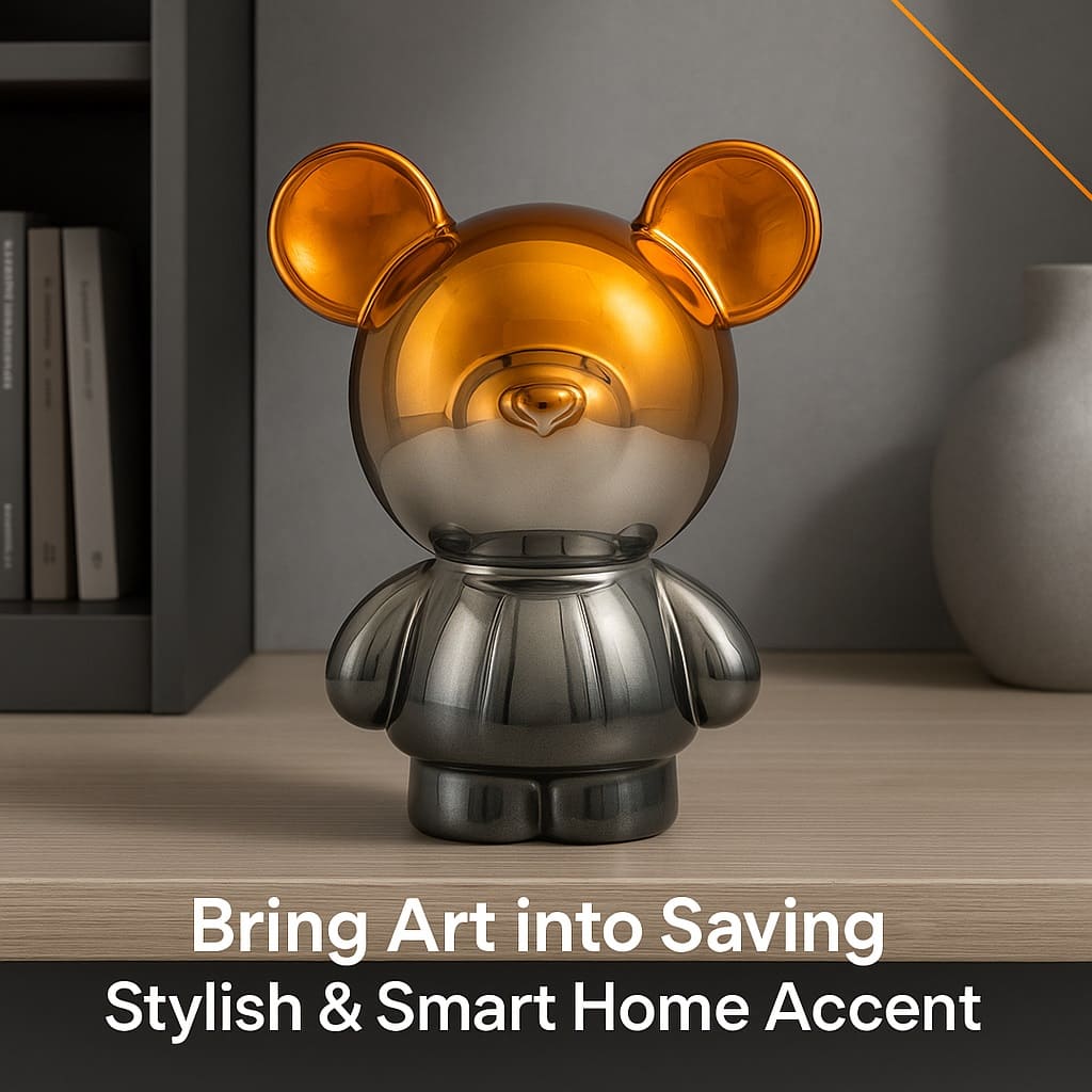 Chrome Bear Piggy Bank – Multicolor & Reflective Finish – Decorative & Functional