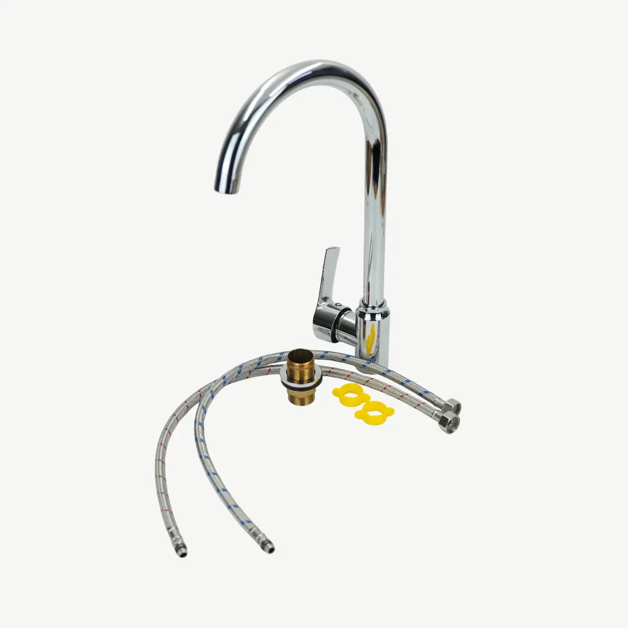 Effortless Installation, Lasting Elegance. Introducing the Complete Chrome Kitchen Faucet Set, the perfect blend of sleek, modern design and practical utility for your kitchen or utility sink. Available now at the Lazood online store, this set provides everything you need for immediate setup, ensuring a hassle-free plumbing upgrade. The graceful, high-arc design not only looks stunning but maximizes workspace and convenience in your sink.