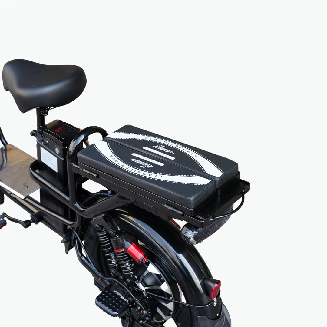 This model features a versatile rear seat that can comfortably accommodate an additional passenger, thanks to its ergonomic backrest that ensures a relaxed and secure riding experience. For delivery or business use, the rear seat can also be folded into a flat platform, ideal for carrying boxes or packages safely and efficiently—making it a perfect companion for riders who value both comfort and functionality.