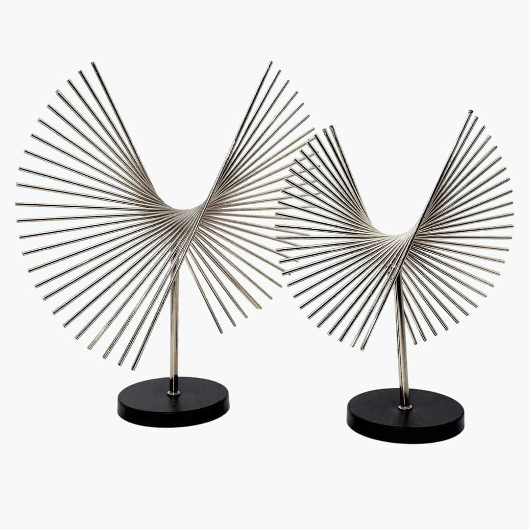 Add a touch of modern sophistication to your interior with the Geometric Metal Line Art Sculpture Set of Two (large and small) with Stand from Lazood. This stunning decorative piece features clean, geometric lines crafted from high-quality metal, perfectly mounted on a sturdy base for stability and elegance. Its abstract design makes it more than just a sculpture—it’s a statement piece that enhances the atmosphere of any room, whether placed in your living room, office, bedroom, or entryway.