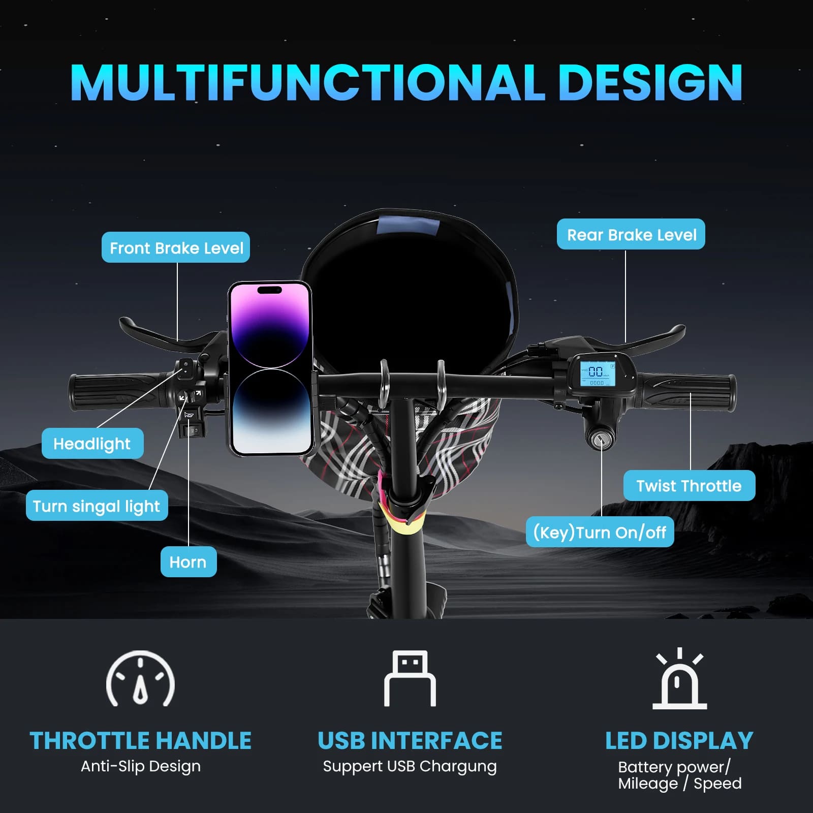 This compact design allows the bike to fit easily in a car trunk, elevator, or under a desk—perfect for modern urban lifestyles. With energy-efficient performance and safety protection features like undervoltage and overcurrent control, the HONGLM guarantees reliability every ride.