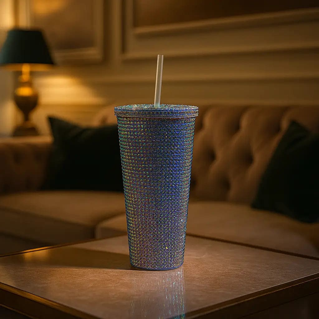 Iridescent Crystal Tumbler with Straw