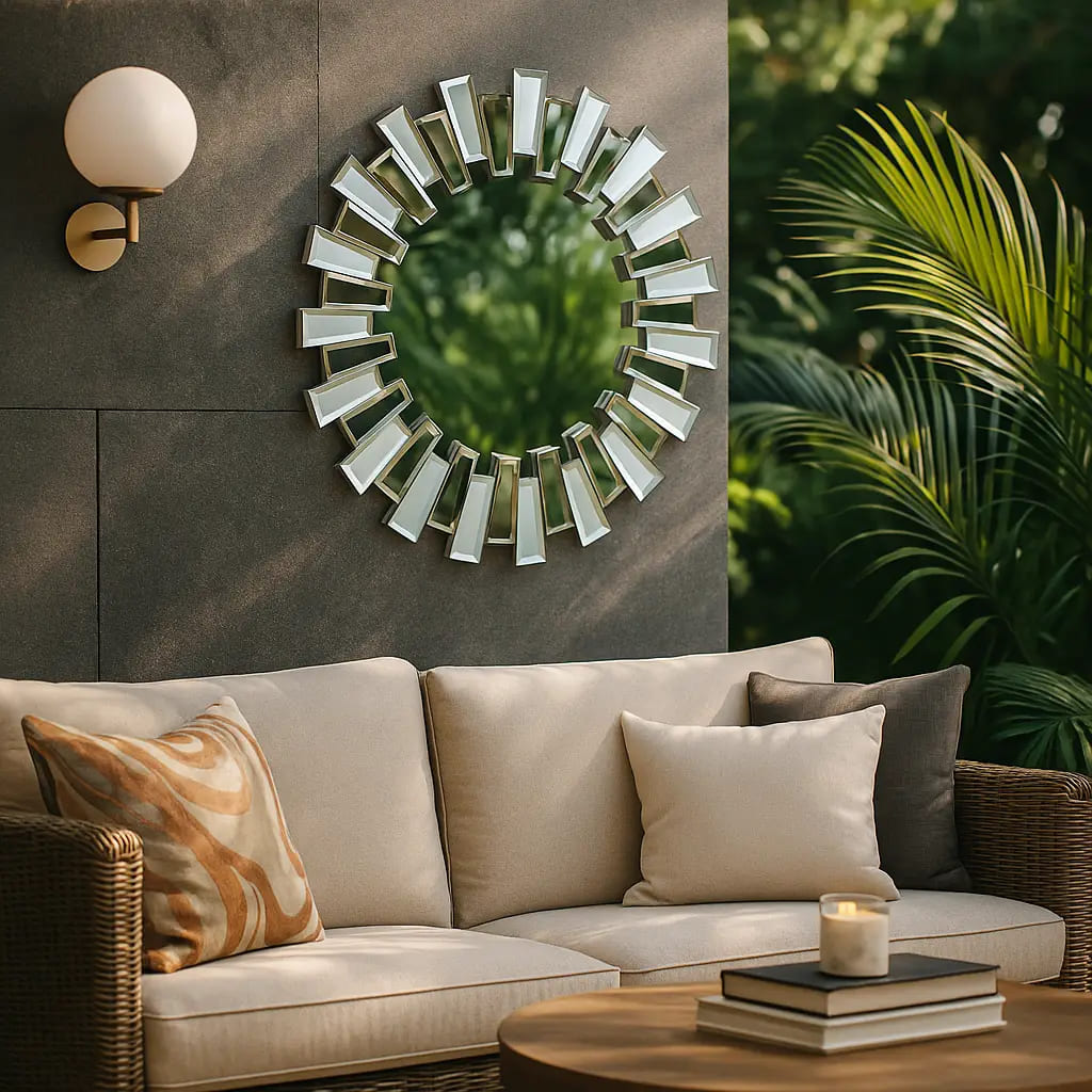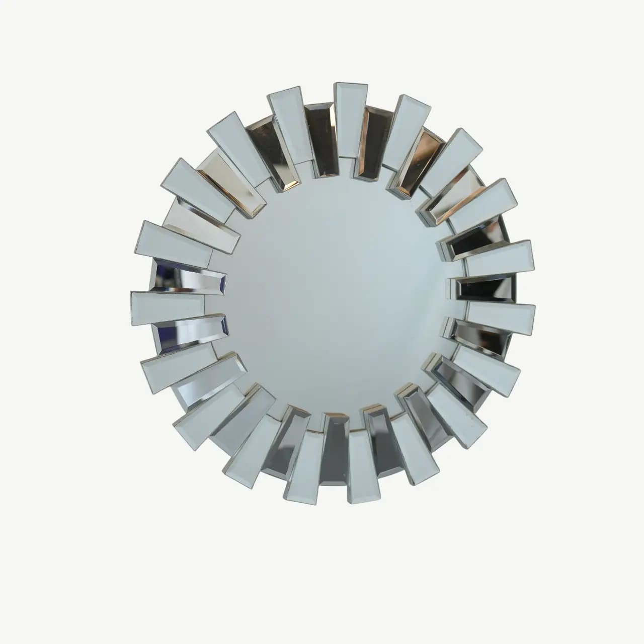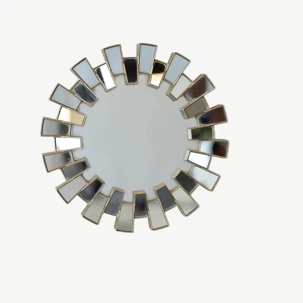 Capturing Light with Art Deco Flair. The Luxury Sunburst Wall Mirror is more than just a functional item; it is a radiant piece of high-end wall decor that instantly elevates the ambiance of any room. Inspired by classic Art Deco and mid-century designs, this mirror features a central circular mirror surrounded by an array of angled, rectangular reflective segments, creating a captivating sunburst effect. This must-have item is available exclusively in the Lazood online store.