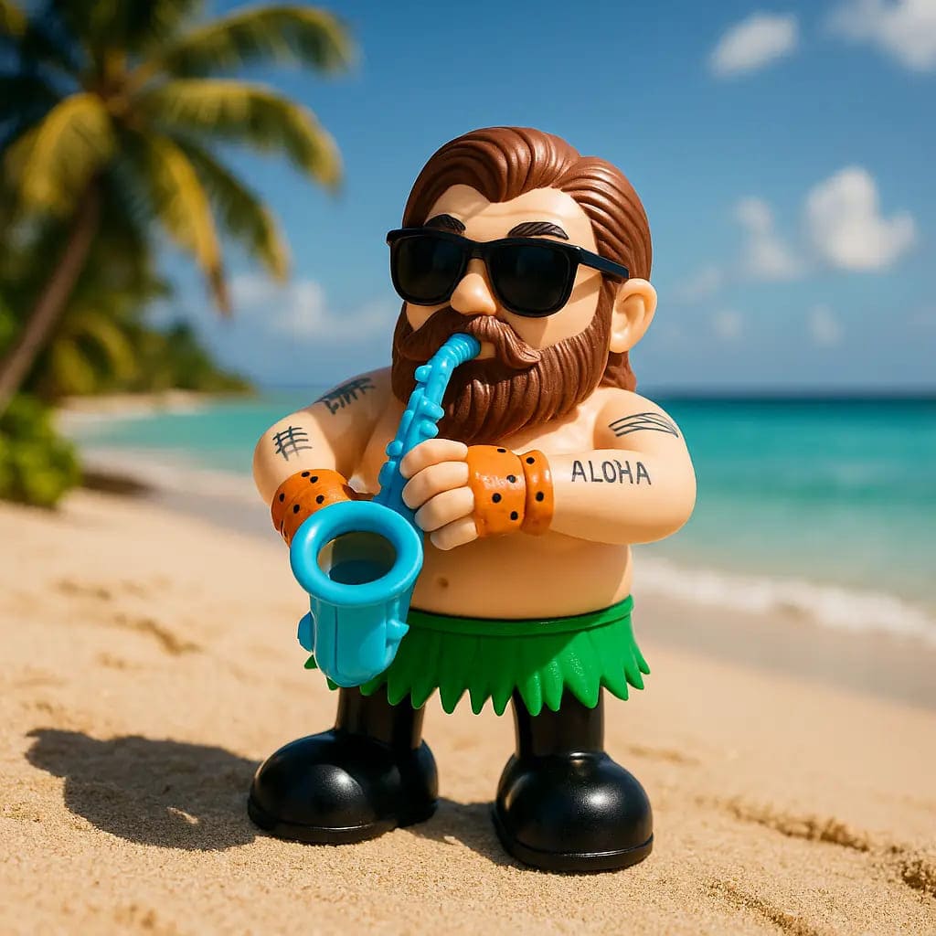 Bring a splash of fun and music to any room with the captivating Saxophone Figurine. This isn’t just a toy; it’s a hilarious dancing character ready to brighten your day! Dressed in his cool shades and hula skirt, and sporting some awesome tattoos, this bearded chap plays his saxophone while performing a rhythmic and energetic dance. It’s the perfect entertaining gift for children and adults alike, instantly transforming any dull moment into a mini-party.