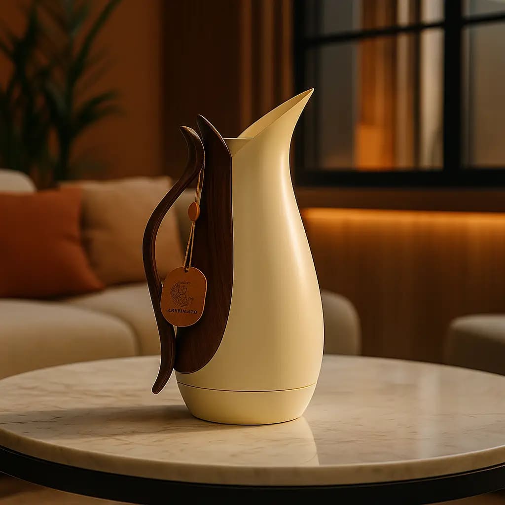 The Sculpted Wooden Handle Serving Pitcher from Lazood is where high design meets traditional functionality. This exquisite thermos is a statement piece, blending minimalist European style with organic accents. The smooth, ivory-colored body tapers gracefully, creating an artistic silhouette, while the defining element is the organically carved, dark wood handle that flows seamlessly into the design. This unique Sculpted Wooden Handle Serving Pitcher is designed not only to impress but also to perform, utilizing reliable thermal technology to keep your hot beverages—like coffee, hot chocolate, or tea—at the perfect serving temperature.