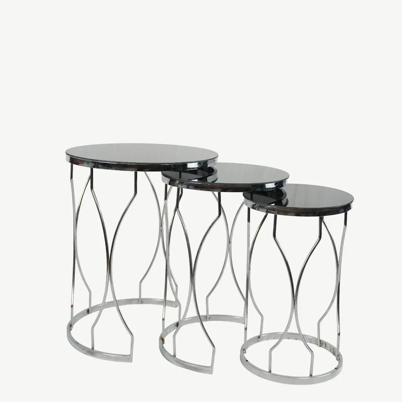 Triple Elegance and Smart Design. The Set of 3 Nesting Tables is the perfect addition to your home, offering three separate surfaces for service and display that easily slide and stack beneath the largest table when not needed. This innovative design makes it an excellent choice for maximizing space in living rooms and reception areas without sacrificing style. You can now effortlessly acquire this distinguished set through Lazood to complete your online shopping.