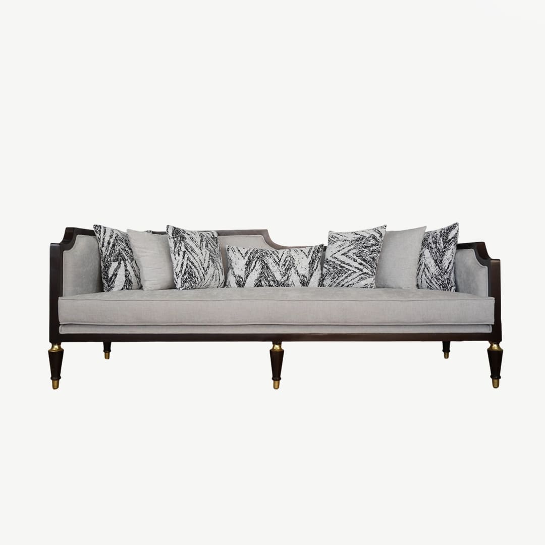 • Timeless Design: Classic frame structure with modern accent cushions and elegant gold detailing on the legs.