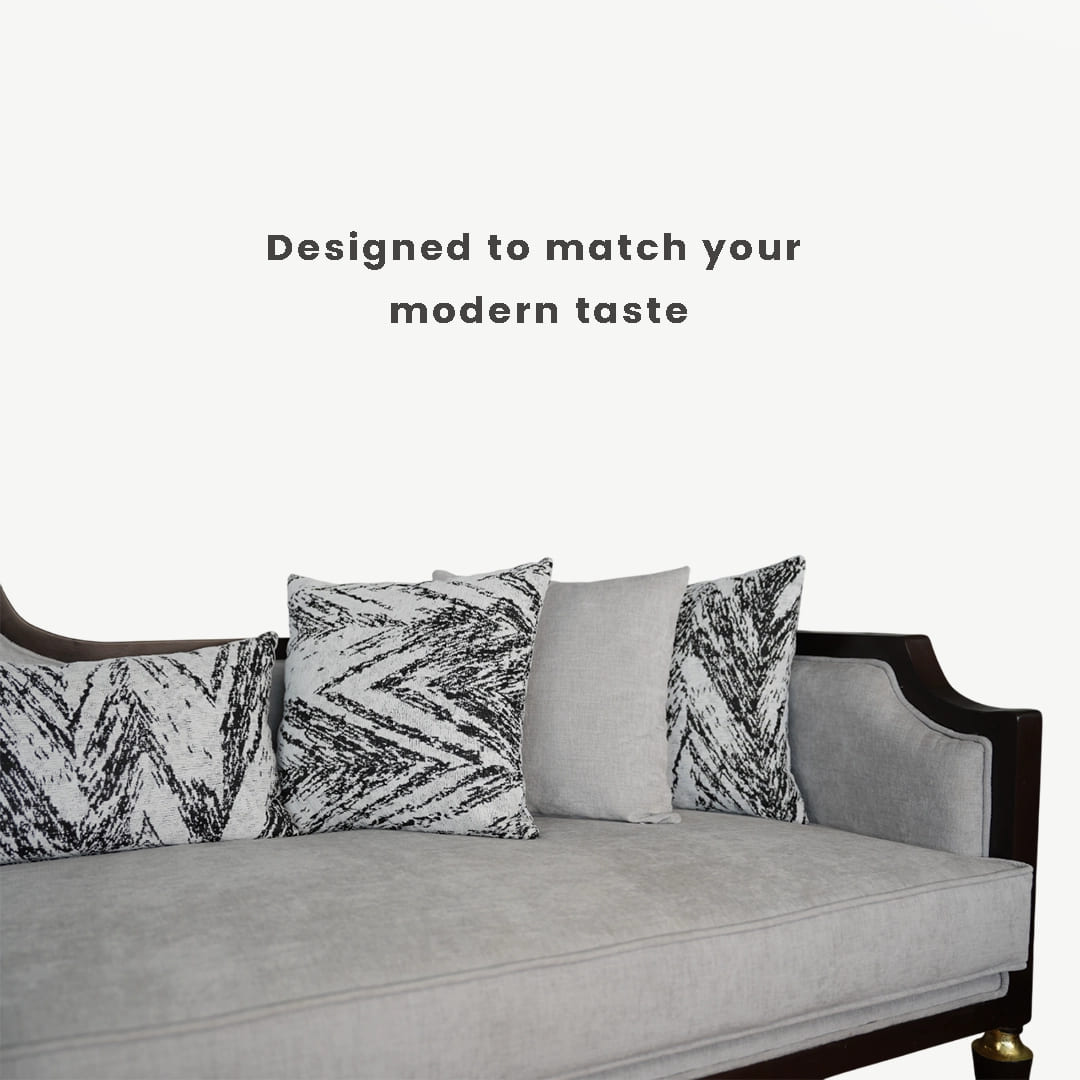 The full ensemble includes two spacious three-seater sofas, two distinguished armchairs, and one beautifully crafted coffee table. The foundation of each piece is a sturdy Beech wood frame, renowned for its exceptional durability and strength. The seating experience is unparalleled, featuring high-density sponge padding for optimal support, enveloped in plush velvet fabric. The contrasting patterns on the accent pillows and armchairs add a contemporary flair to the deeply rich wood finish. Complete your home’s aesthetic with this luxurious set; simply Order the iconic Set today from Lazood.