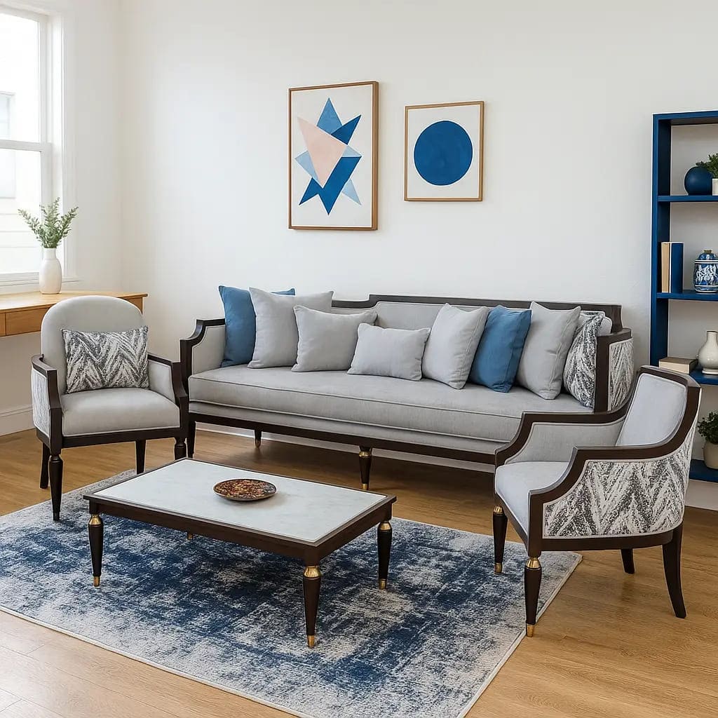 • Complete 5-Piece Set: Includes two Three-Seater Sofas, two Armchairs, and one Coffee Table.