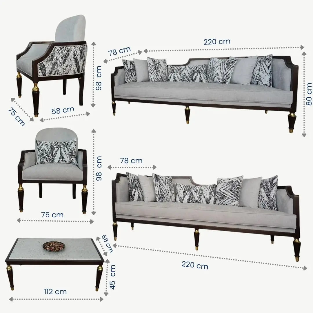 Elevate your living space with the magnificent Torii Classic Set, available exclusively through the Lazood online store. This 5-piece furniture collection is expertly designed to embody a perfect balance between classical style and luxurious comfort, establishing it as the centerpiece of any sophisticated interior. The Torii Classic Set is crafted for discerning buyers who seek superior material quality and exquisite finishing details in their furniture.