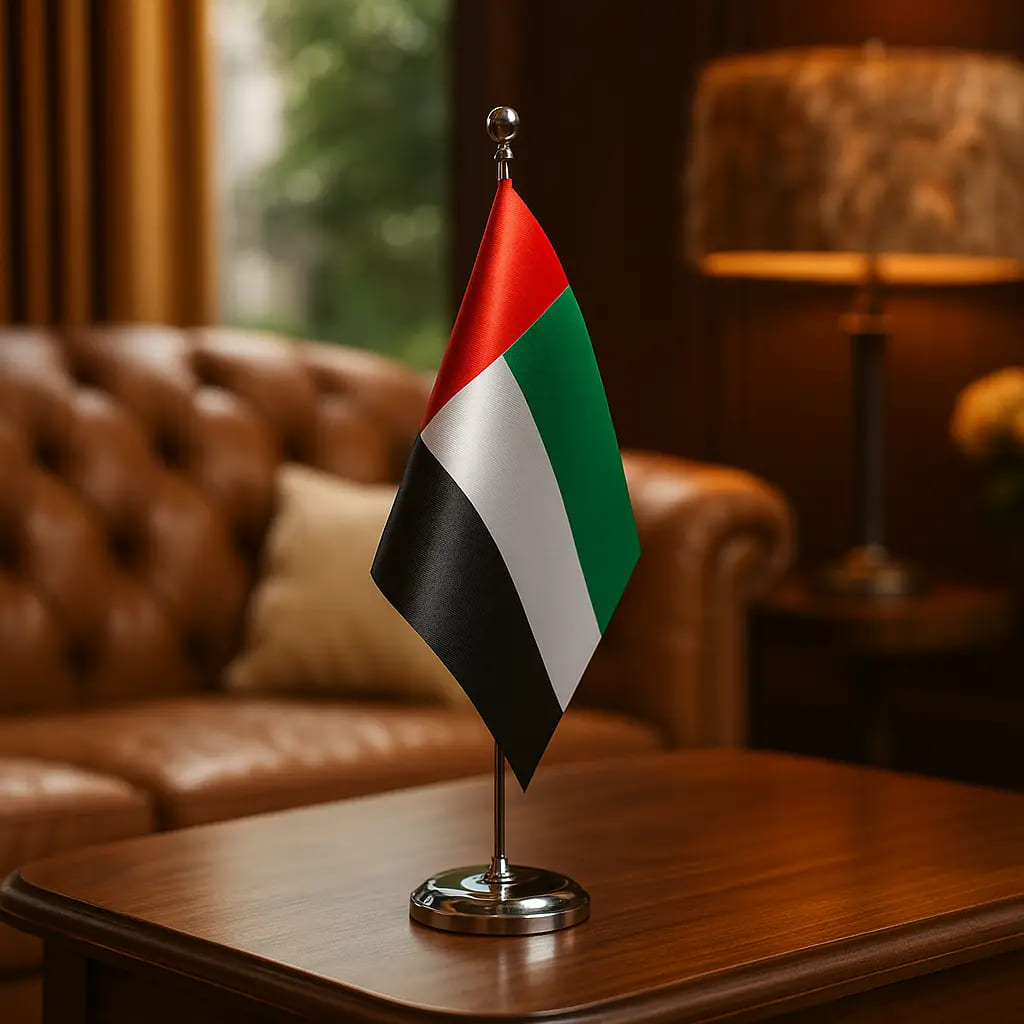 UAE National Day Luxury Desk Flag with Metal Base – Premium UAE Table Flag for Office, Reception & Home Décor