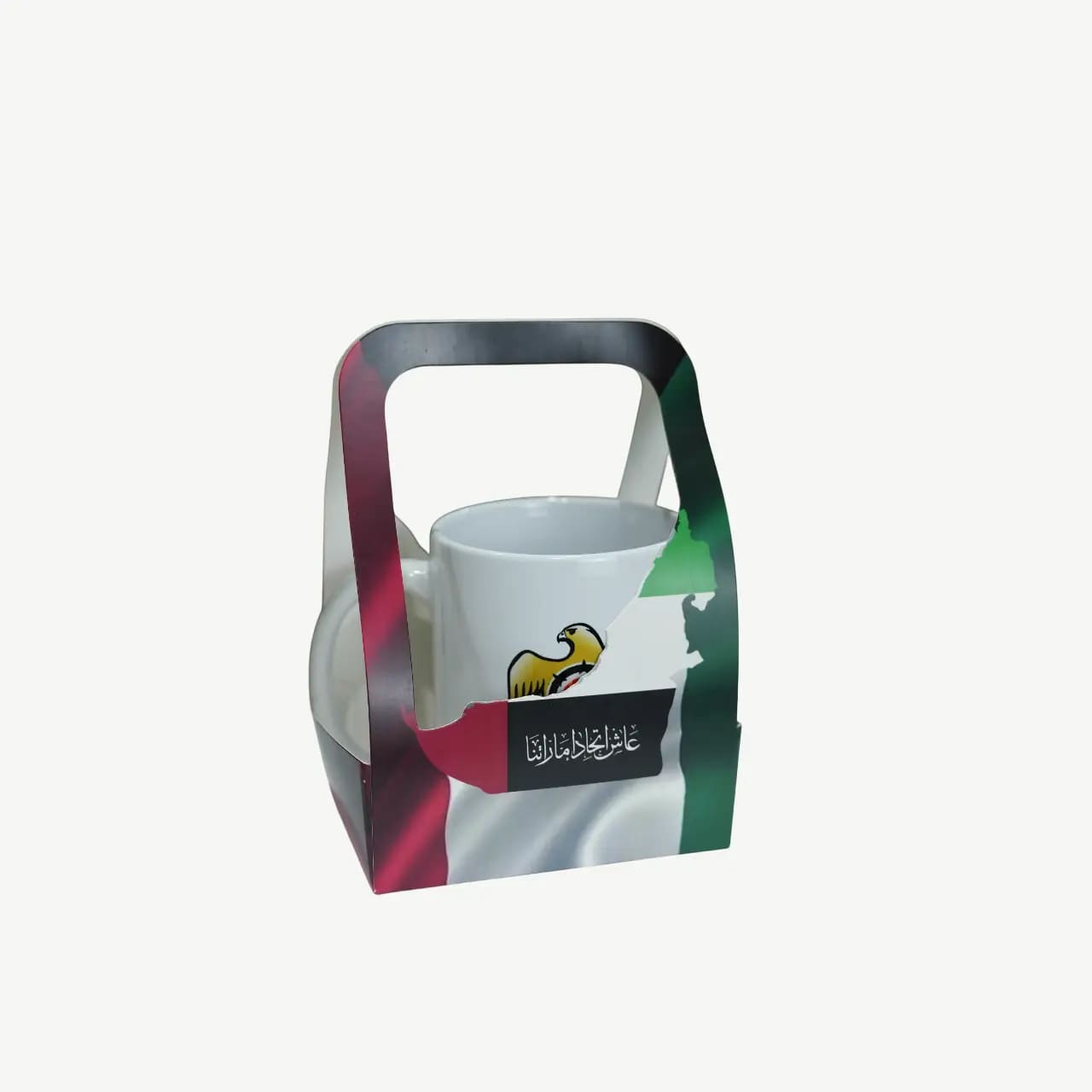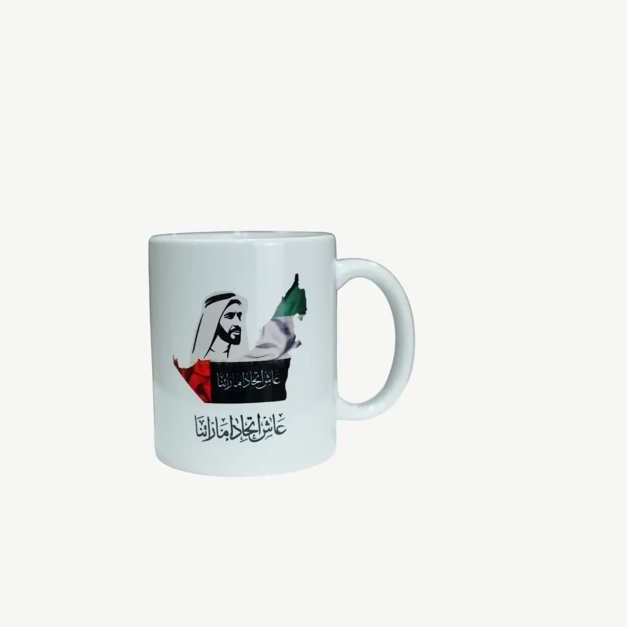 The UAE National Day Patriotic Mug features vibrant, detailed prints that capture the essence of Emirati pride and leadership. It is designed to be a durable and eye-catching addition to your kitchen, office, or as a thoughtful gift for any true patriot.